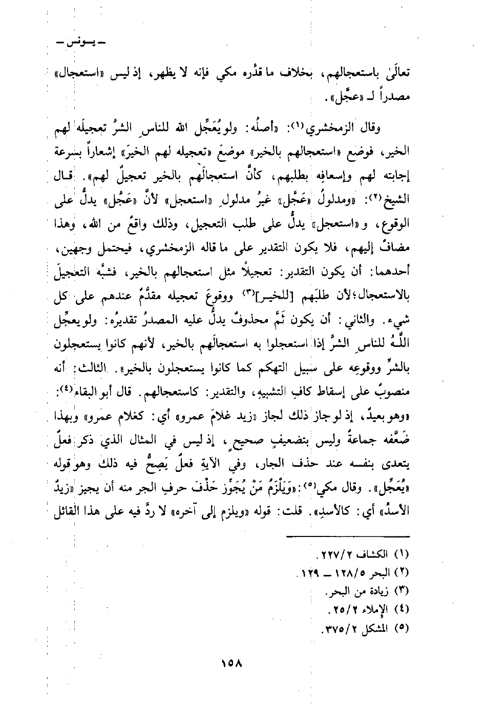 تعالى باستعجالهم، بخلاف ما قدَّره مكي فإنه لا يظهر، إذ ليس» استعجال «مصدراً ل» عجَّل «.