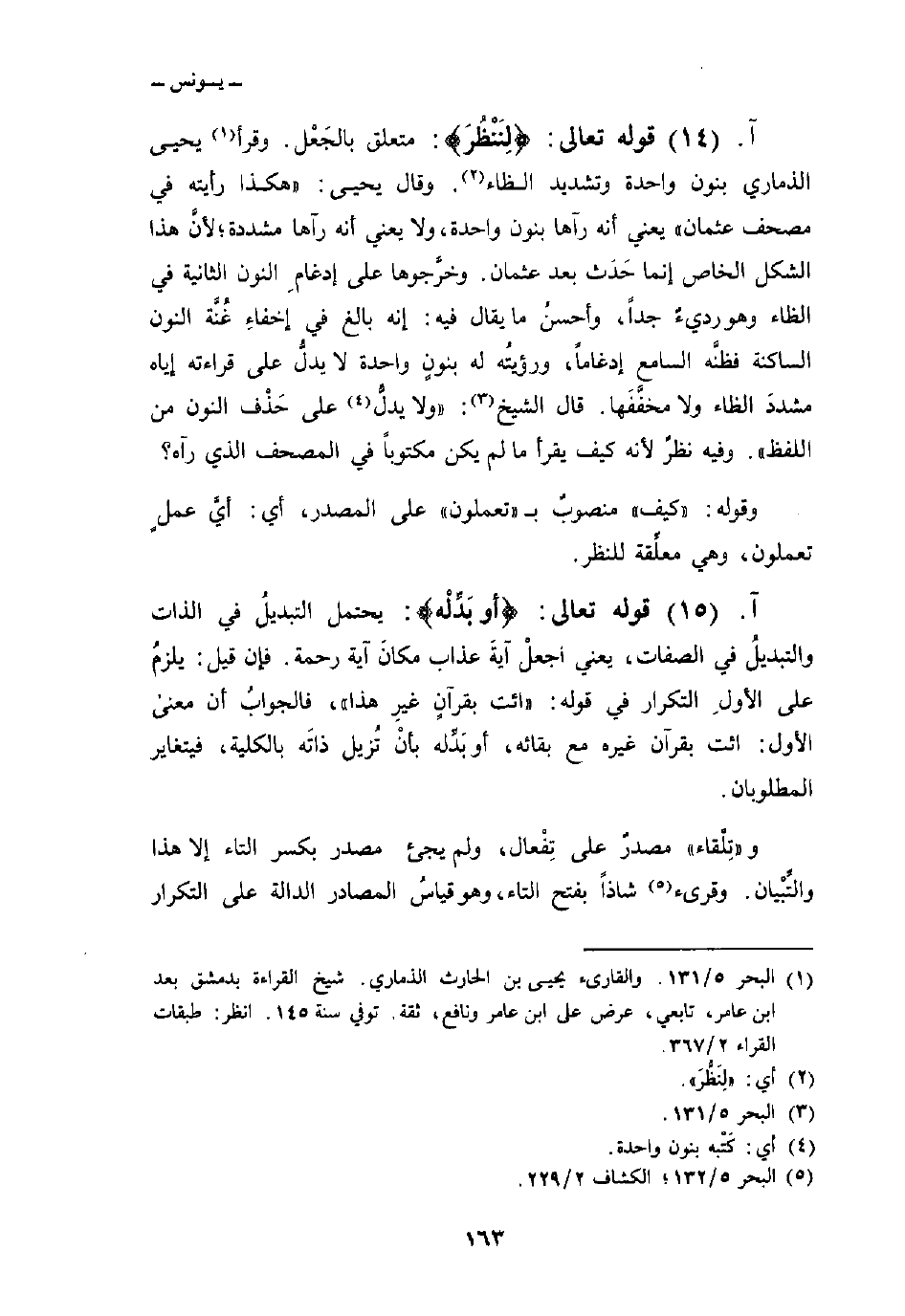 قوله تعالى: {لِنَنظُرَ} : متعلق بالجَعْل. وقرأ يحيى الذماري بنون واحدة وتشديد الظاء. وقال يحيى: «هكذا رأيته في مصحف عثمان» يعني أنه رآها بنون واحدة، ولا يعني أنه رآها مشددة؛ لأنَّ هذا الشكل الخاص إنما حَدَث بعد عثمان. وخرَّجوها على إدغامِ النون الثانية في الظاء وهو رديءٌ جداً، وأحسنُ ما يقال فيه: إنه بالغ في إخفاءِ غُنَّة النون الساكنة فظنَّه السامع إدغاماً، ورؤيتُه له بنونٍ واحدة لا يدلُّ على قراءته إياه مشددَ الظاء ولا مخفَّفَها. قال الشيخ: «ولا يدلُّ» على حَذْفَ النون من اللفظ «. وفيه نظرٌ لأنه كيف يقرأ ما لم يكن مكتوباً في المصحف الذي رآه؟
