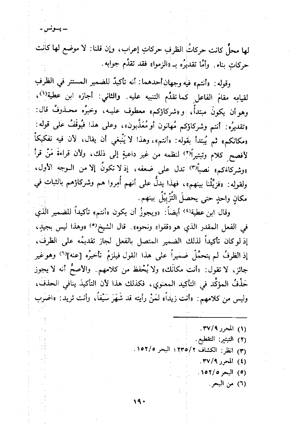 وقال ابن عطية أيضاً: «ويجوزُ أن يكون» أنتم «تأكيداً للضمير الذي في الفعل المقدر الذي هو» قفوا «ونحوه» .
