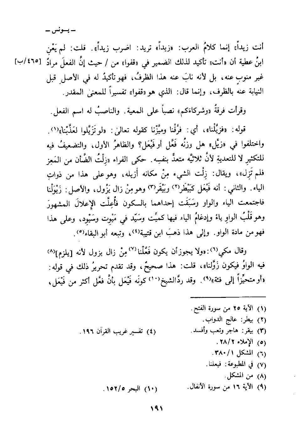 وقال مكي: «ولا يجوز أن يكون فَعَّلْنا مِنْ زال يزول لأنه [يلزم] فيه الواوُ فيكون زَوَّلنا» ، قلت: هذا صحيحٌ، وقد تقدم تحريرُ ذلك في قوله: {أَوْ مُتَحَيِّزاً إلى فِئَةٍ} [الأنفال: 16] . وقد ردَّ الشيخ كونَه فيْعَل بأنَّ فعَّل أكثر من فَيْعَل،