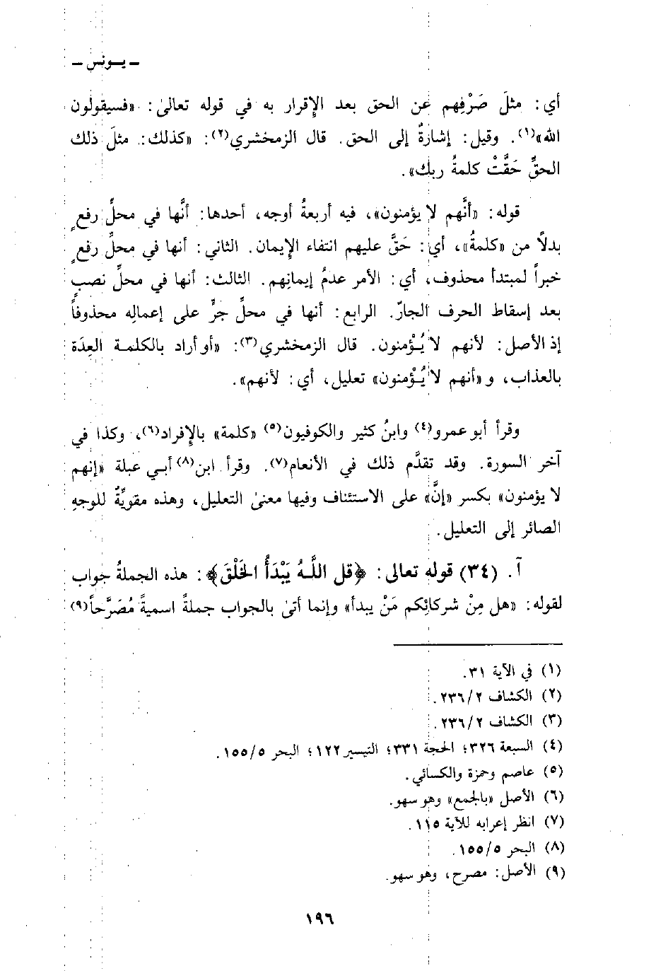 وقرأ أبو عمرو وابنُ كثير والكوفيون «كلمة» بالإِفراد، وكذا في آخر السورة. وقد تقدَّم ذلك في الأنعام. وقرأ ابن أبي عبلة {أَنهم لا يُؤْمنون} بكسر «إنَّ» على الاستئناف وفيها معنى التعليل، وهذه مقويِّةُ للوجه الصائر إلى التعليل.