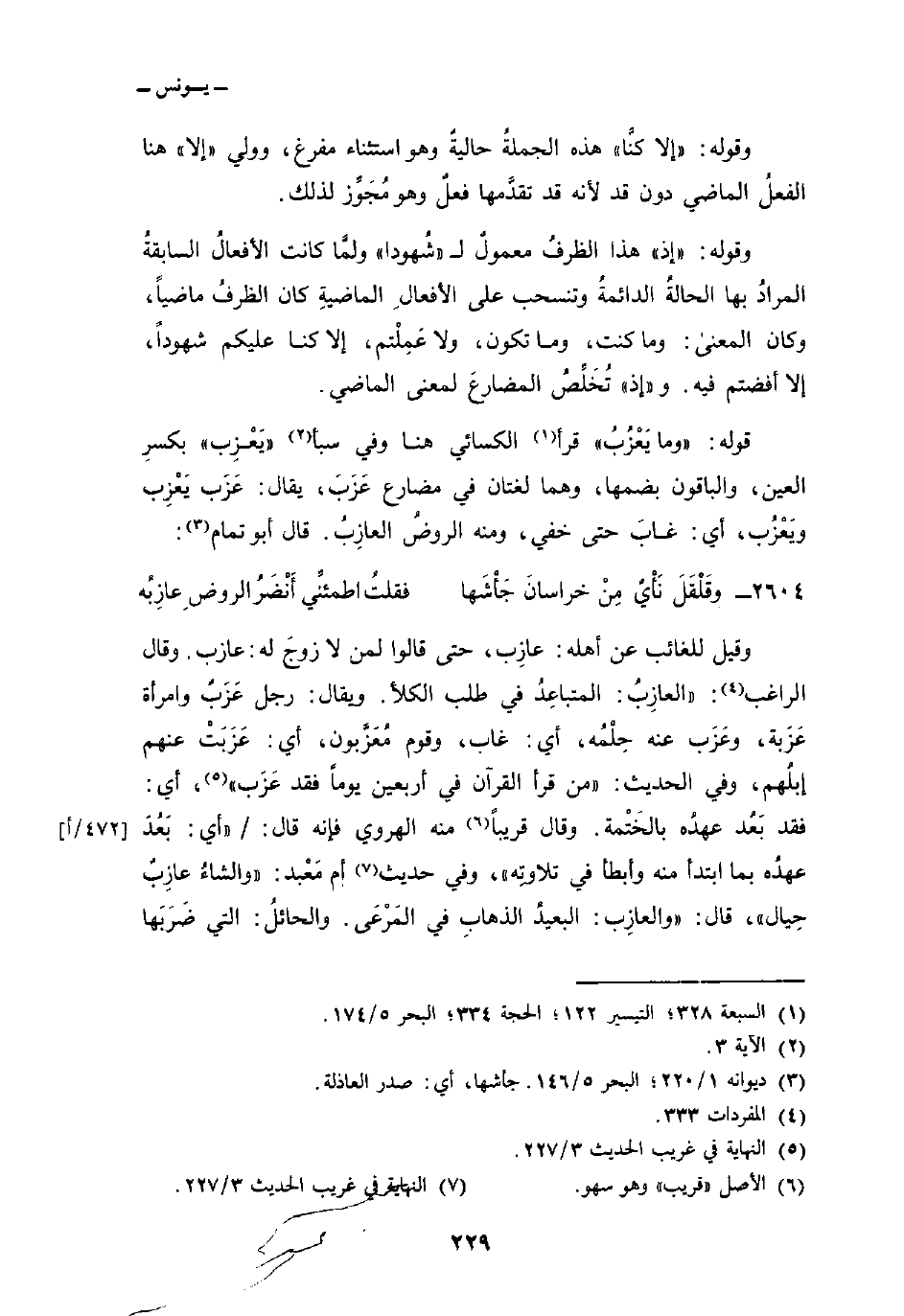 قوله: {وَمَا يَعْزُبُ} قرأ الكسائي هنا وفي سبأ «يَعْزِب» بكسرِ العين، والباقون بضمها، وهما لغتان في مضارع عَزَبَ، يقال: عَزَب يَعْزِب العين، ويَعْزُب، أي: غابَ حتى خفي، ومنه الروضُ العازِبُ. قال أبو تمام: