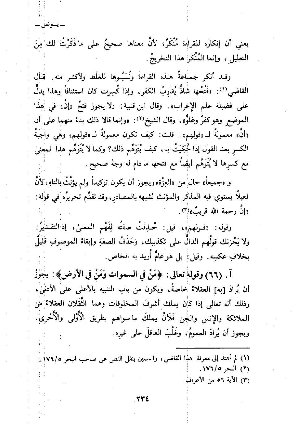 وقد أنكر جماعةٌ هذه القراءةَ ونَسَبُوها للغلَط ولأكثر منه. قال القاضي: «فَتْحُها شاذٌّ يُقارِبُ الكفر، وإذا كُسِرت كان استئنافاً وهذا يدلُّ على فضيلة علم الإِعراب» . وقال ابن قتيبة: «لا يجوز فتحُ» إنَّ «في هذا الموضعِ وهو كفرٌ وغلوٌّ» ، وقال الشيخ: «وإنما قالا ذلك بناءً منهما على أن» أنَّ «معمولةٌ ل» قولهم «. قلت: كيف تكون معمولةً ل» قولهم «وهي واجبةُ الكسرِ بعد القول إذا حُكِيَتْ به، كيف يُتَوَهَّم ذلك؟ وكما لا يُتَوَهَّم هذا المعنى مع كسرِها لا يُتَوَهَّم أيضاً مع فتحها ما دام له وجهٌ صحيح.