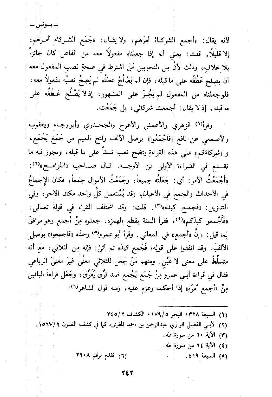 لأنه يقال:» أجمع الشركاءُ أمرَهم، ولا يقال: «جَمَع الشركاء أمرهم» إلا قليلاً، قلت: يعني أنه إذا جعلناه مفعولاً معه من الفاعل كان جائزاً بلا خلافٍ، لأنَّ مِن النحويين مَنْ اشترط في صحةِ نصبِ المفعول معه أن يصلح عَطْفُه على ما قبله، فإن لم يَصْلُحْ عطفُه لم يَصِحَّ نصبُه مفعولاً معه، فلو جعلناه من المفعول لم يَجُزْ على المشهور، إذ لا يَصْلُح عَطْفُه على ما قبله، إذ لا يقال: أجمعت شركائي، بل جَمَعْت.