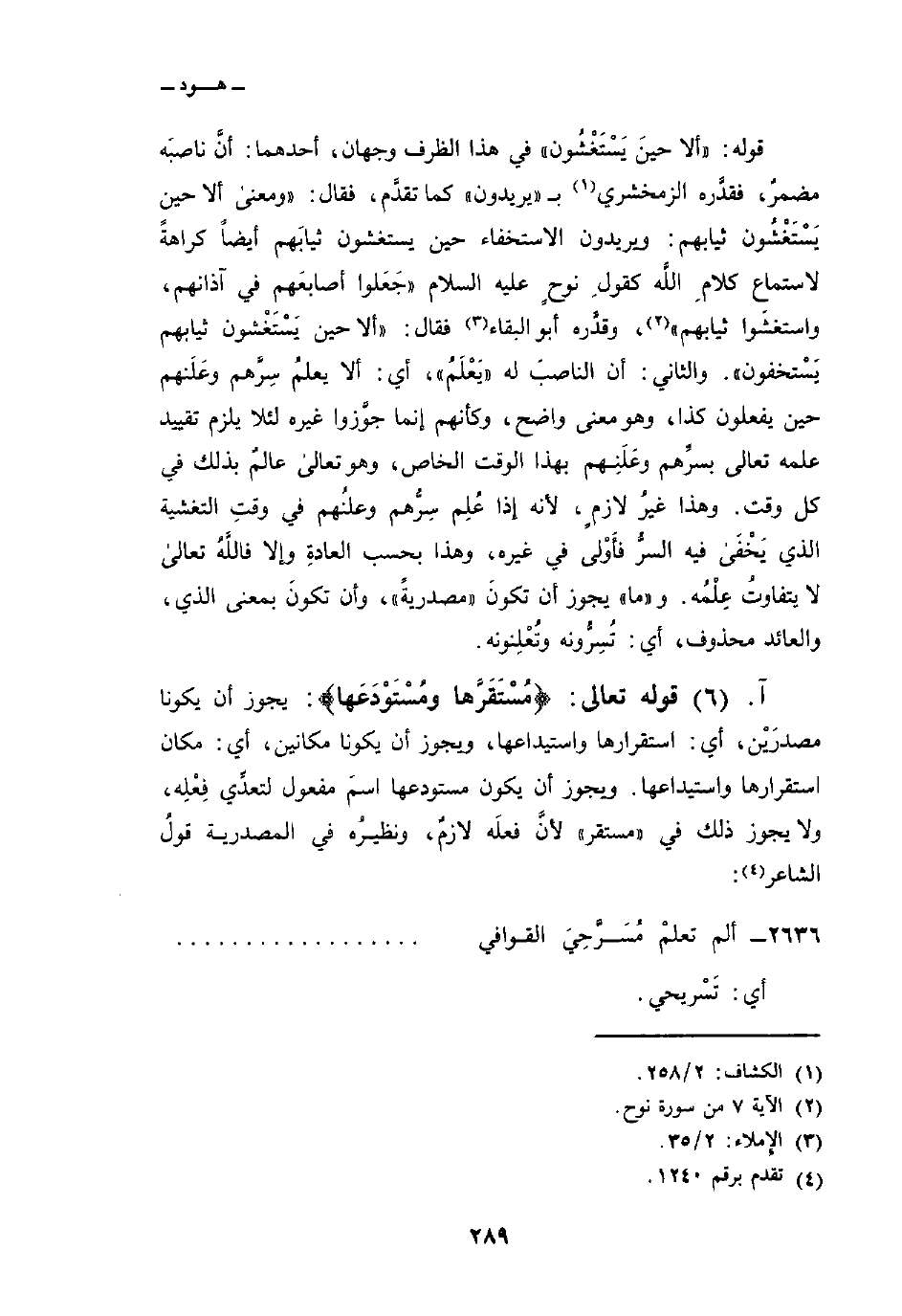 قوله تعالى: {مُسْتَقَرَّهَا وَمُسْتَوْدَعَهَا} : يجوز أن يكونا مصدَرْين، أي: استقرارها واستيداعها، ويجوز أن يكونا مكانين، أي: مكان استقرارها واستيداعها. ويجوز أن يكون مستودعها اسمَ مفعول لتعدِّي فِعْلِه، ولا يجوز ذلك في «مستقر» لأنَّ فعلَه لازمٌ، ونظيرُه في المصدرية قولُ الشاعر: