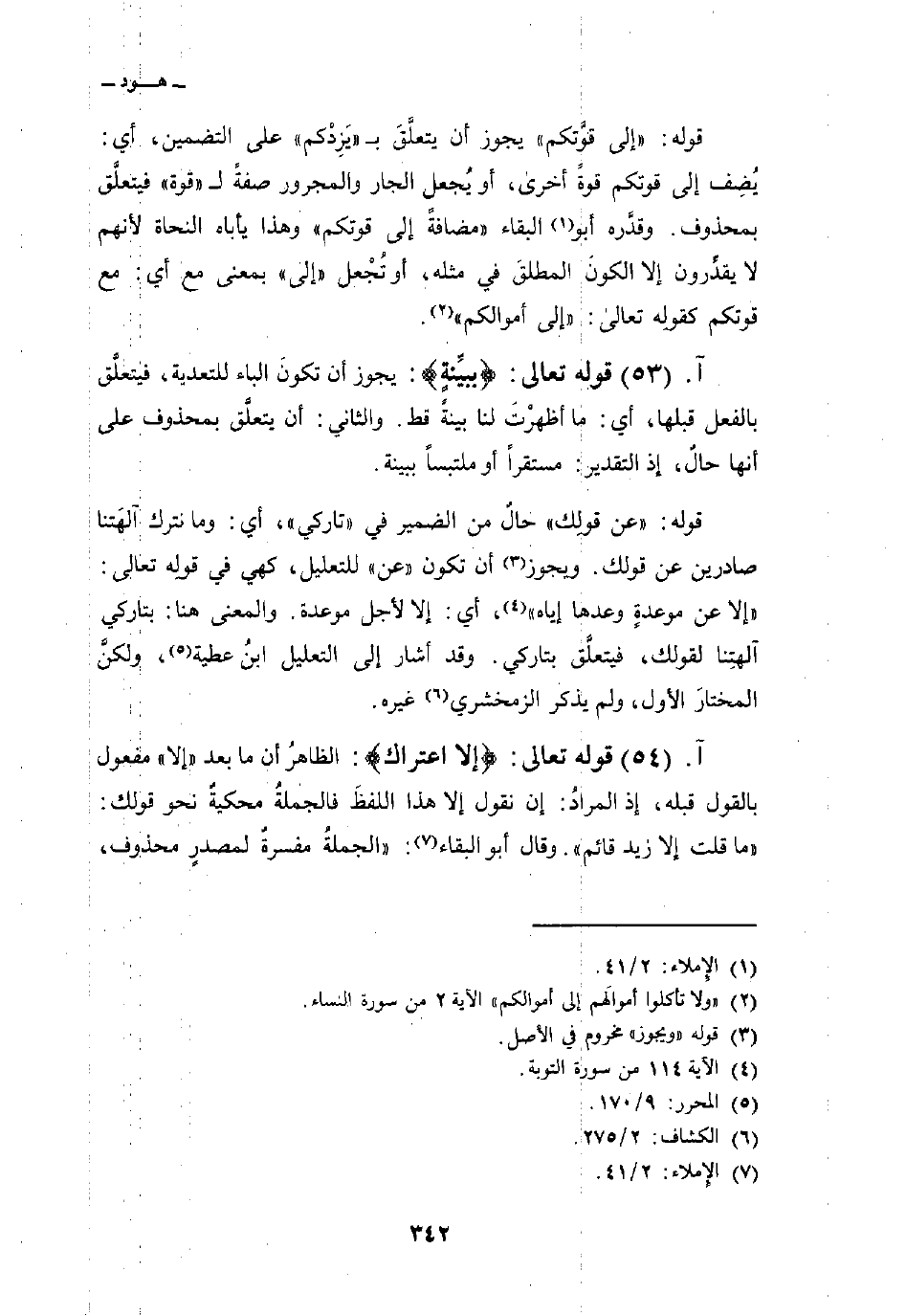 قوله: {إلى قُوَّتِكُمْ} يجوز أن يتعلَّقَ ب «يَزِدْكم» على التضمين، أي: يُضِف إلى قوتكم قوةً أخرى، أو يُجعل الجار والمجرور صفةً ل «قوة» فيتعلَّق بمحذوف. وقدَّره أبو البقاء «مضافةً إلى قوتكم» وهذا يأباه النحاة لأنهم لا يقدِّرون إلا الكونَ المطلقَ في مثله، أو تُجْعل «إلى» بمعنى مع أي: مع قوتكم كقولِه تعالى: {إلى أَمْوَالِكُمْ} [النساء: 2] .