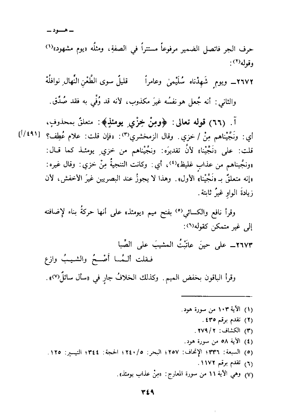 قوله تعالى: {وَمِنْ خِزْيِ يَوْمِئِذٍ} : متعلقٌ بمحذوفٍ، أي: ونَجَّيْناهم مِنْ/ خزي. وقال الزمخشري: «فإن قلت: علام عُطِف؟ قلت: على» نَجَّيْنا «لأنَّ تقديرَه: ونجَّيْناهم من خزيِ يومئذ كما قال: {وَنَجَّيْنَاهُمْ مِّنْ عَذَابٍ غَلِيظٍ} [هود: 58] ، أي: وكانت التنجيةُ مِنْ خزي: وقال غيره:» إنه متعلقٌ ب «نَجَّيْنا» الأول «. وهذا لا يجوزُ عند البصريين غيرَ الأخفش، لأن زيادةَ الواوِ غيرُ ثابتة.
