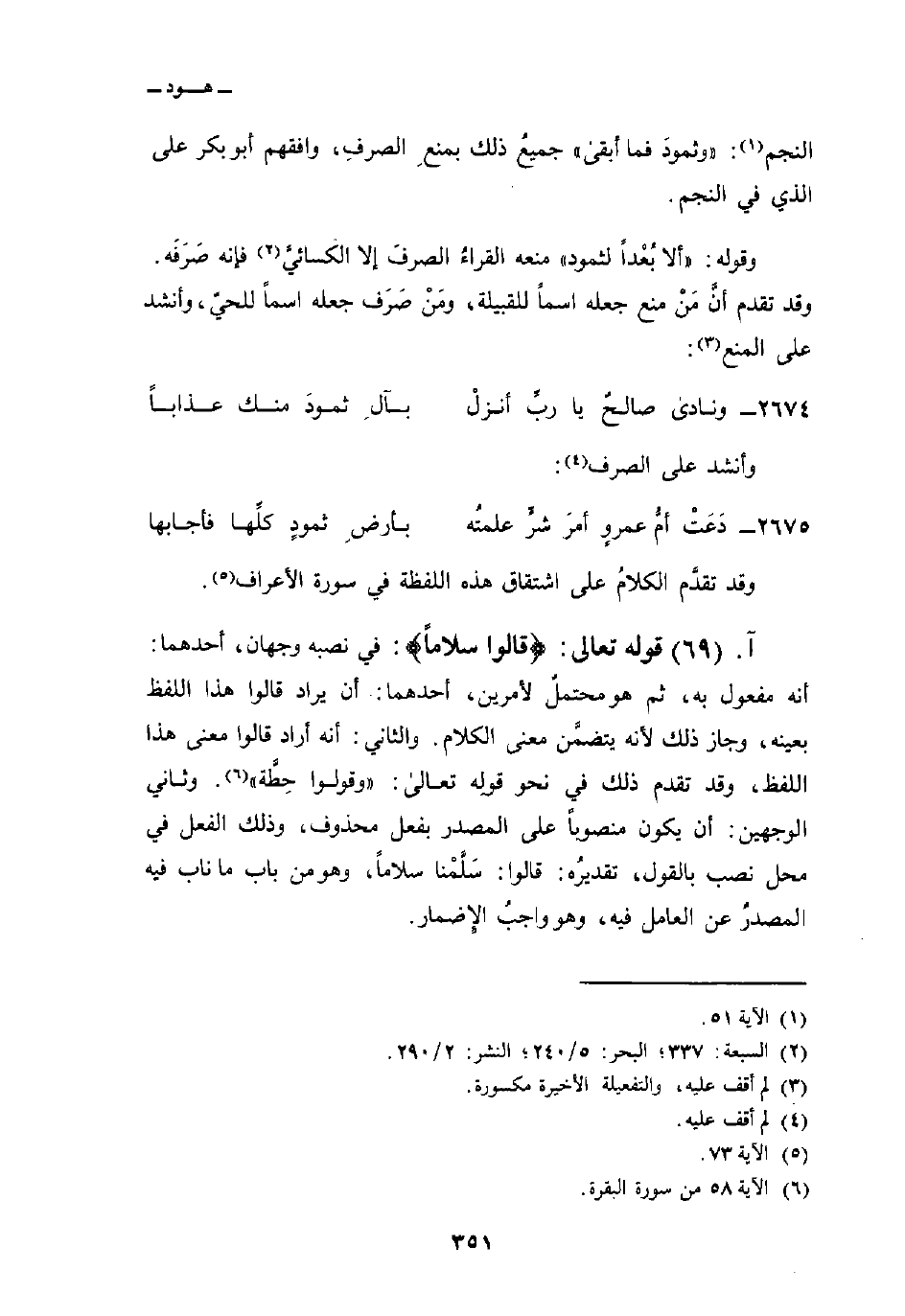 النجم: {وَثَمُودَ فَمَآ أبقى} [الآية: 51] جميعُ ذلك بمنعِ الصرفِ، وافقهم أبو بكر على الذي في النجم.