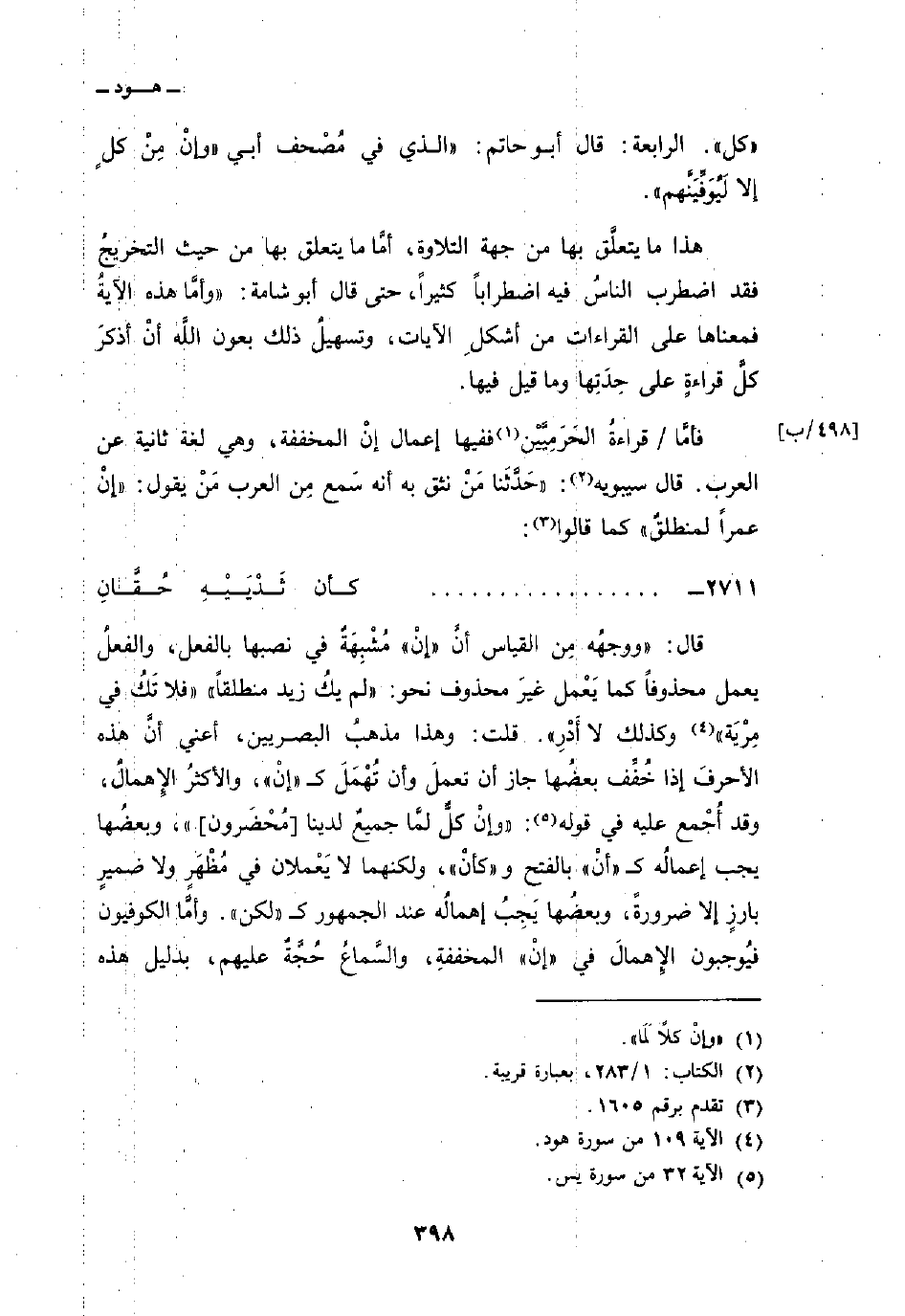 كل» . الرابعة. قال أبو حاتم: «الذي في مُصْحف أبي {وإنْ مِنْ كلٍ إلا لَيُوَفِّيَنَّهم} .