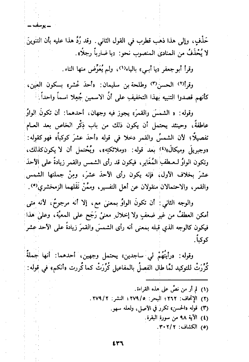 والوجه الثاني: أن تكونَ الواوُ بمعنى مع، إلا أنه مرجوحٌ، لأنه متى أمكن العطفُ من غير ضعفٍ ولا إخلالِ معنىً رَجَح على المعيَّة، وعلى هذا فيكون كالوجه الذي قبله بمعنى أنه رأى الشمسَ والقمرَ زيادةً على الأحد عشر كوكباً.