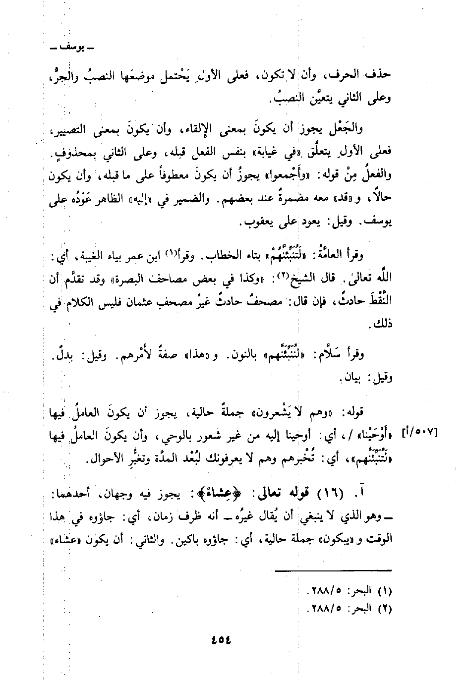 والجَعْل يجوز أن يكونَ بمعنى الإِلقاء، وأن يكونَ بمعنى التصيير، فعلى الأولِ يتعلَّق «في غيابة» بنفس الفعل قبله، وعلى الثاني بمحذوفٍ. والفعلُ مِنْ قوله: «وأَجْمعوا» يجوزُ أن يكونَ معطوفاً على ما قبله، وأن يكون حالاً، و «قد» معه مضمرةٌ عند بعضهم. والضمير في «إليه» الظاهر عَوْدُه على يوسف. وقيل: يعود على يعقوب.