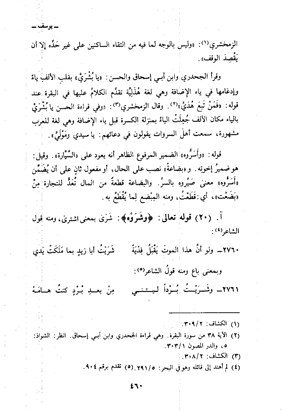 الزمخشري: «وليس بالوجه لما فيه من التقاء الساكنين على غير حَدِّه إلا أن يَقْصِدَ الوقف» .
