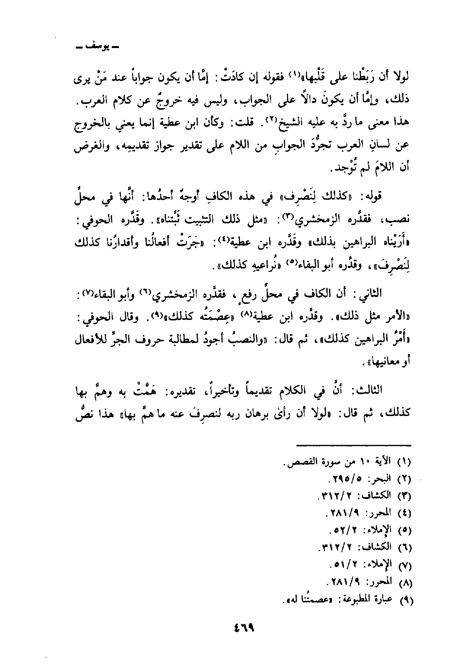 الثالث: أنَّ في الكلام تقديماً وتأخيراً، تقديره: هَمَّتْ به وهمَّ بها كذلك، ثم قال: «لولا أن رأى برهان ربه لنصرِفَ عنه ما همَّ بها» هذا نصٌّ