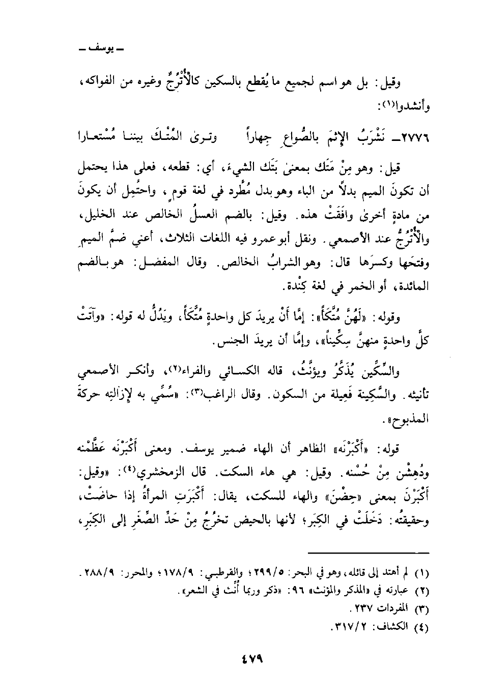 وقوله: {لَهُنَّ مُتَّكَئاً} : إمَّا أَنْ يريدَ كل واحدةٍ مُتَّكَأً، ويَدُلُّ له قوله: {وَآتَتْ كُلَّ وَاحِدَةٍ مِّنْهُنَّ سِكِّيناً} ، وإمَّا أن يريدَ الجنس.