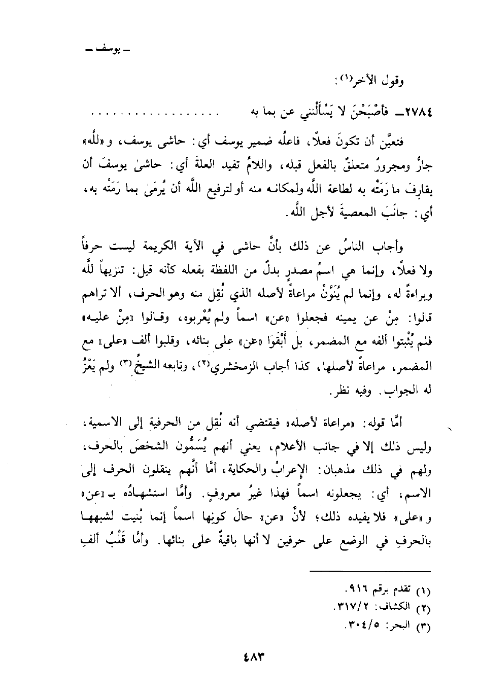 أمَّا قوله:» مراعاة لأصله «فيقتضي أنه نُقِل من الحرفية إلى الاسمية، وليس ذلك إلا في جانب الأعلام، يعني أنهم يُسَمُّون الشخصَ بالحرف، ولهم في ذلك مذهبان: الإِعرابُ والحكاية، أمَّا أنَّهم ينقلون الحرف إلى الاسم، أي: يجعلونه اسماً فهذا غيرُ معروفٍ. وأمَّا استشهادُه ب» عن «و» على «فلا يفيده ذلك؛ لأنَّ» عن «حالَ كونِها اسماً إنما بُنيت لشبهها بالحرفِ في الوضع على حرفين لا أنها باقيةٌ على بنائها.