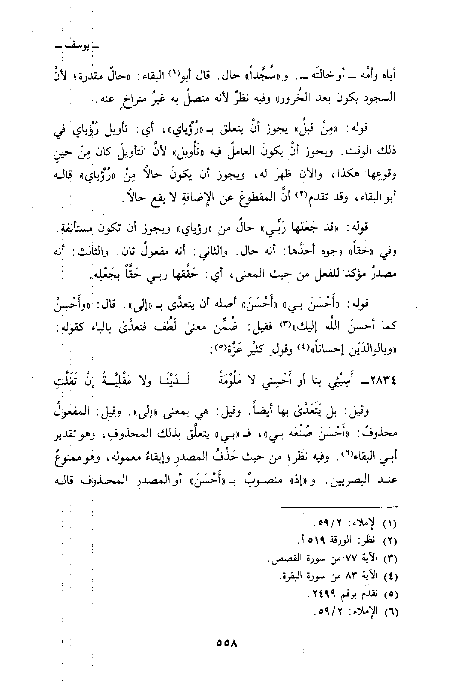 وقيل: بل يتعدى بها أيضاً. وقيل: هي بمعنى «إلى» . وقيل: المفعولُ محذوفٌ: «أَحْسَنَ صُنْعَه بي» ، ف «بي» يتعلَّق بذلك المحذوفِ، وهو تقدير أبي البقاء. وفيه نظر؛ من حيث حَذْفُ المصدرِ وإبقاءُ معموله، وهو ممنوعٌ عند البصريين. و «إذ» منصوبٌ ب «أَحْسَنَ» أو المصدرِ المحذوف قاله