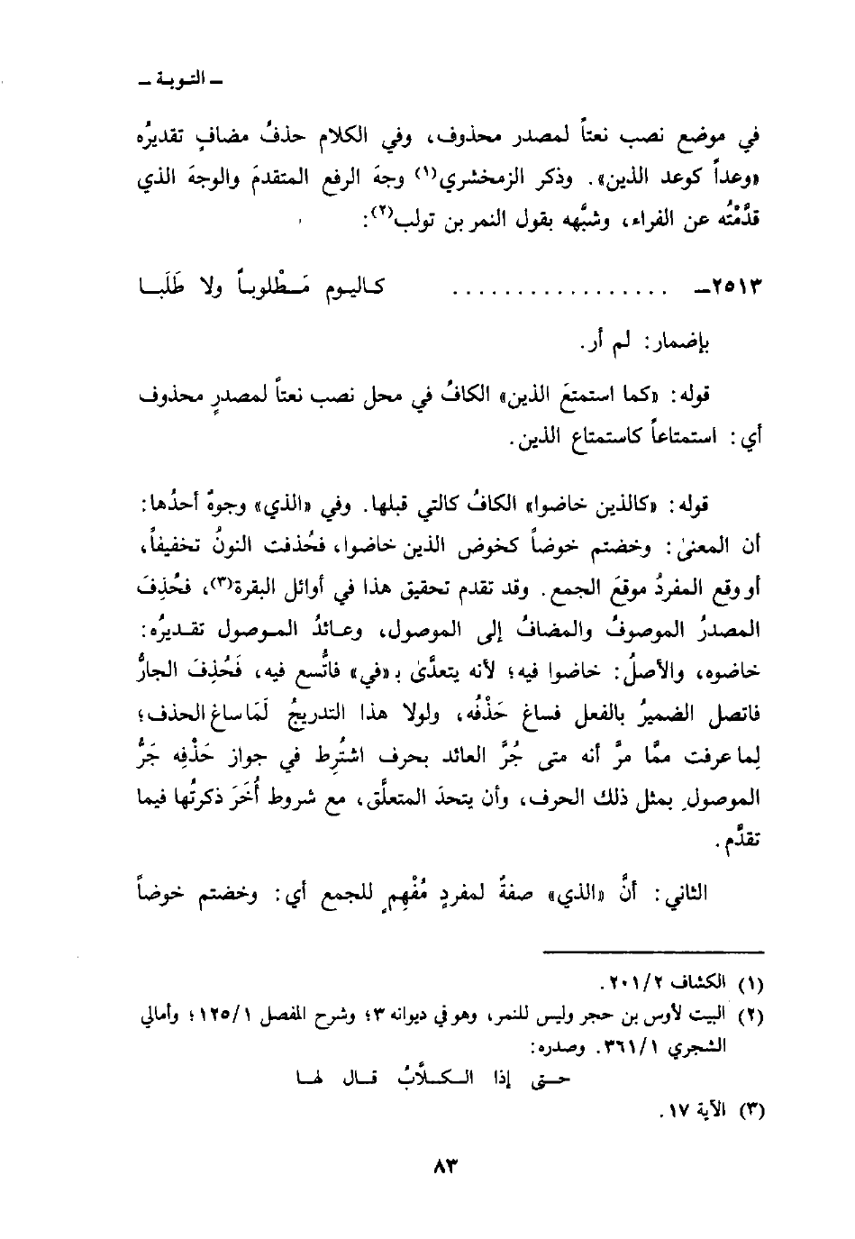 الثاني: أنَّ» الذي «صفةٌ لمفردٍ مُفْهِمٍ للجمع أي: وخضتم خوضاً