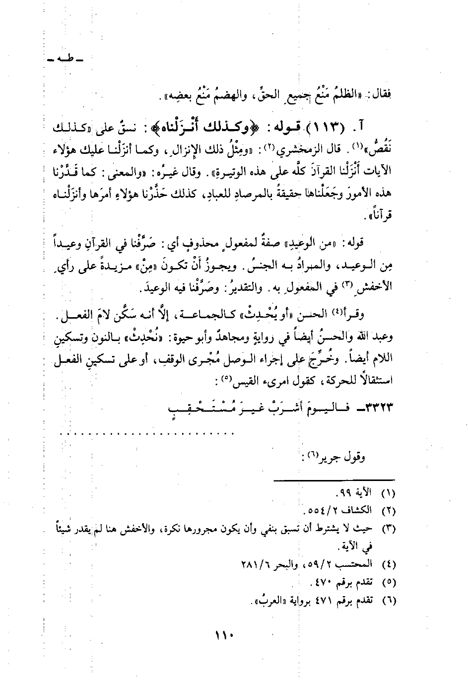 وقرأ الحسن «أو يُحْدِثْ» كالجماعة، إلاَّ أنه سَكَّن لامَ الفعل. وعبد الله والحسنُ أيضاً في روايةٍ ومجاهدٌ وأبو حيوة: «نُحْدِثْ» بالنون وتسكينِ اللام أيضاً. وخُرِّجَ على إجراء الوصل مُجْرى الوقفِ، أو على تسكينِ الفعل استثقالاً للحركة، كقول امرىء القيس: