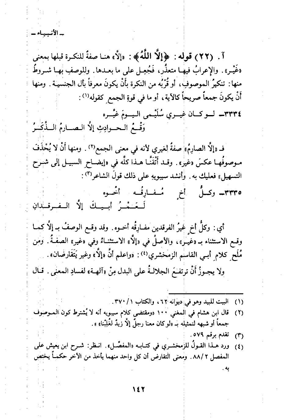 أي: وكلُّ أخٍ غيرُ الفرقدين مفارِقُه أخوه. وقد وقع الوصفُ ب إلاَّ كما وقع الاستثناء ب «غير» ، والأصلُ في «إلاَّ» الاستثناءُ وفي «غير» الصفةُ. ومن مُلَحِ كلامِ أبي القاسم الزمخشري: «واعلم أنَّ» إلاَّ «وغير يَتَقَارضان» .