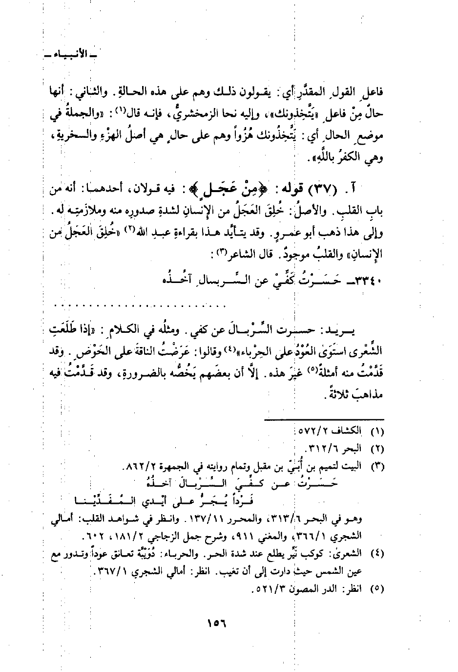 يريد: حسرت السِّرْبالَ عن كفي. ومثلُه في الكلامِ: «إذا طَلَعَت الشِّعْرى استوى العُوْدُ على الحِرْباء» وقالوا: عَرَضْتُ الناقةَ على الحَوْضِ. وقد قَدَّمْتُ منه أمثلةً غيرَ هذه. إلاَّ أن بعضَهم يَخُصُّه بالضرورةِ، وقد قَدَّمْتُ فيه مذاهبَ ثلاثةً.