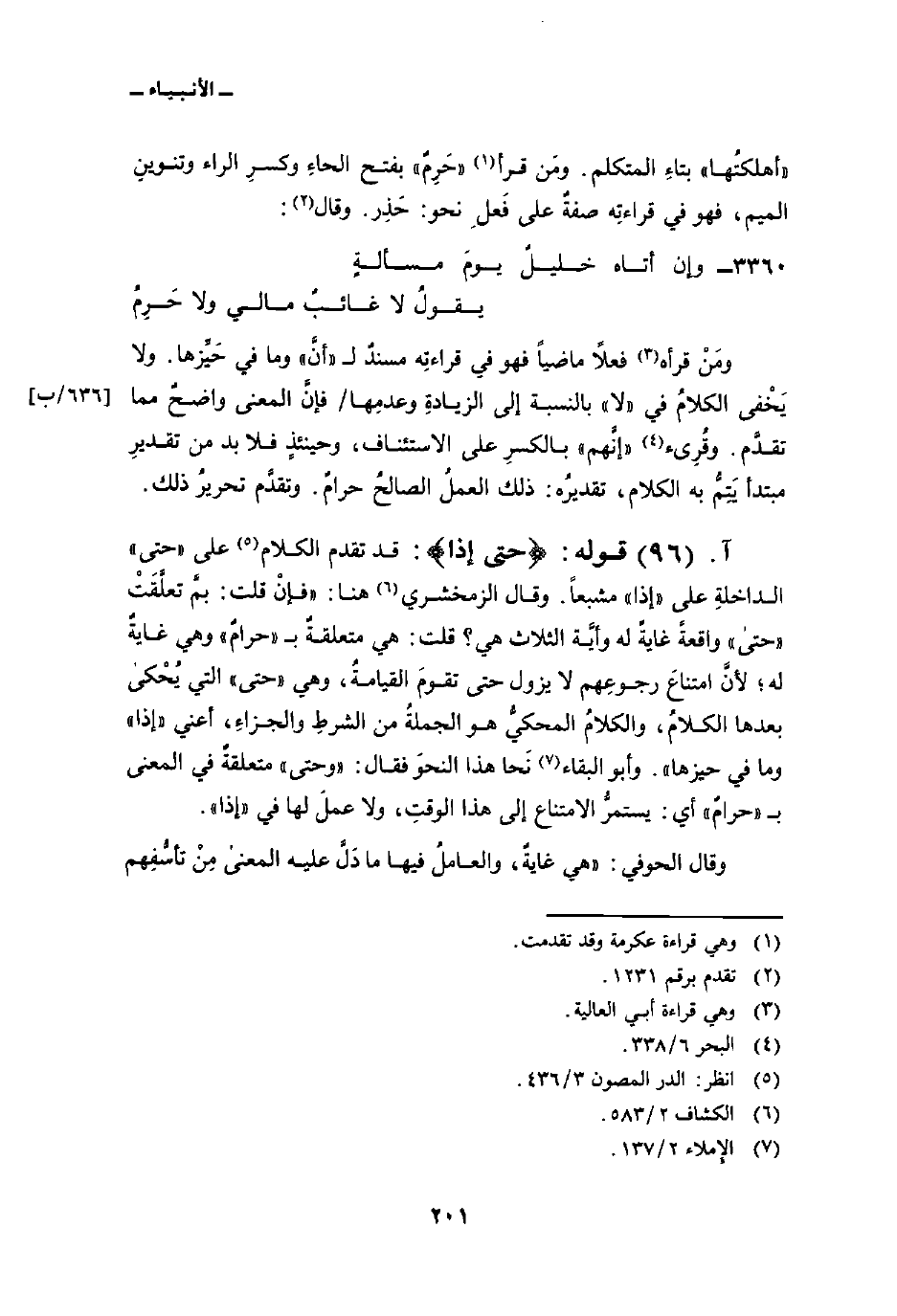 أهلكتُها «بتاءِ المتكلم. ومَن قرأ» حَرِمٌ «بفتح الحاءِ وكسرِ الراء وتنوينِ الميم، فهو في قراءتِه صفةٌ على فَعلِ نحو: حَذِر. وقال: