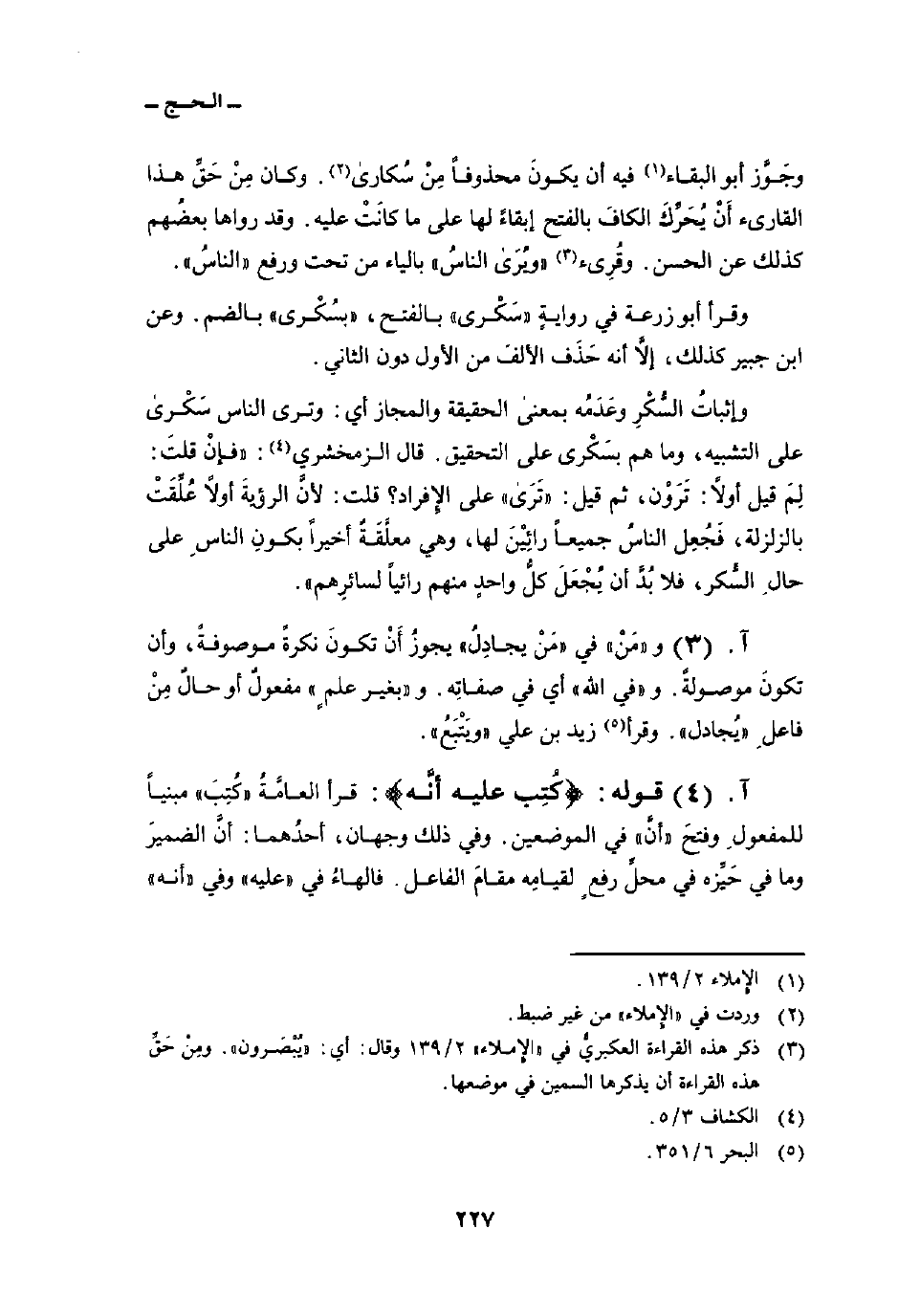 وجَوَّز أبو البقاء فيه أن يكونَ محذوفاً مِنْ سكارى. وكان مِنْ حَقِّ هذا القارىء أَنْ يُحَرِّكَ الكافَ بالفتح إبقاءً لها على ما كانَتْ عليه. وقد رواها بعضُهم كذلك عن الحسن. وقُرِىء «ويرى الناسُ» بالياء من تحت ورفع «الناسُ» .