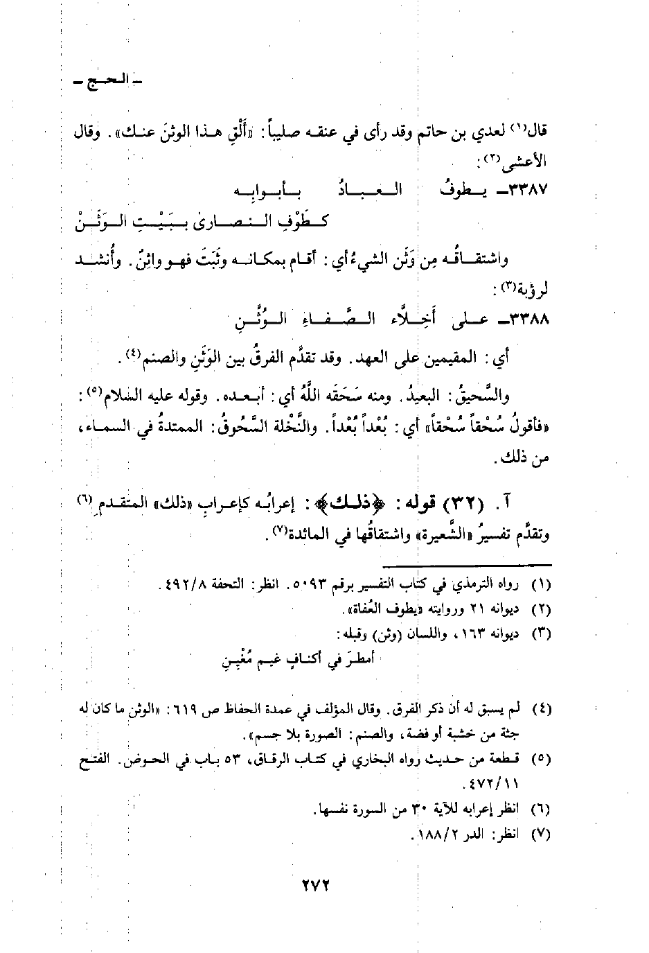 3388 - على أَخِلاَّء الصَّفاءِ الوُثَّنِ ... أي: المقيمين على العهد. وقد تقدَّم الفرقُ بين الوَثَنِ والصنم.