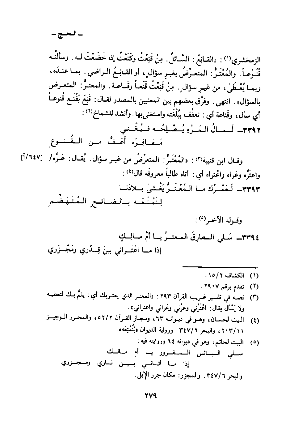 وقال ابن قتيبة: «المُعْتَرُّ: المتعرِّضُ من غير سؤال. يُقال: عَرَّه/ واعتَرَّه وعَراه واعْتراه أي: أتاه طالباً معروفَه قال:
