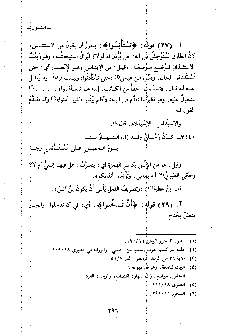 وقيل: هو من الإِنْس بكسرِ الهمزةِ أي: يتعرَّفُ: هل فيها إنسِيُّ أم لا؟ وحكى الطبريُّ أنه بمعنى: وتُؤْنِسُوا أنفسَكم «.