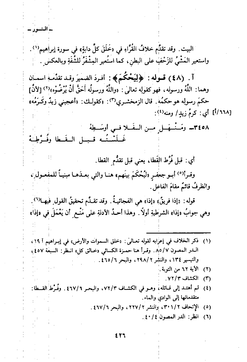 قوله: {لِيَحْكُمَ} : أفردَ الضميرَ وقد تقدَّمه اسمان وهما: اللهُ ورسوله، فهو كقولِه تعالى: {والله وَرَسُولُهُ أَحَقُّ أَن يُرْضُوهُ} [التوبة: 62] [لأنَّ] حكمَ رسولِه هو حكمُه. قال الزمخشري: «كقولك:» أعجبني زيدٌ وكَرَمَهُ «أي: كرمُ زيدٍ/ ومنه: