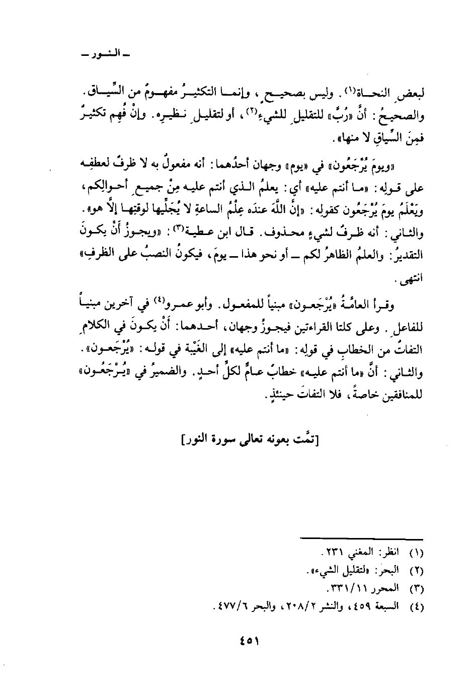 وقرأ العامَّةُ» يُرْجَعون «مبنياً للمفعول. وأبو عمرو في آخرين مبنياً للفاعلِ. وعلى كلتا القراءتين فيجوزُ وجهان، أحدهما: أَنْ يكونَ في الكلامِ التفاتٌ من الخطابِ في قولِه: {مَآ أَنتُمْ عَلَيْهِ} إلى الغَيْبة في قوله:» يُرْجَعون «. والثاني: أنَّ» ما أنتم عليه «خطابٌ عامٌّ لكلِّ أحدٍ. والضميرُ في» يُرْجَعُون «للمنافقين خاصةً، فلا التفاتَ حينئذٍ.