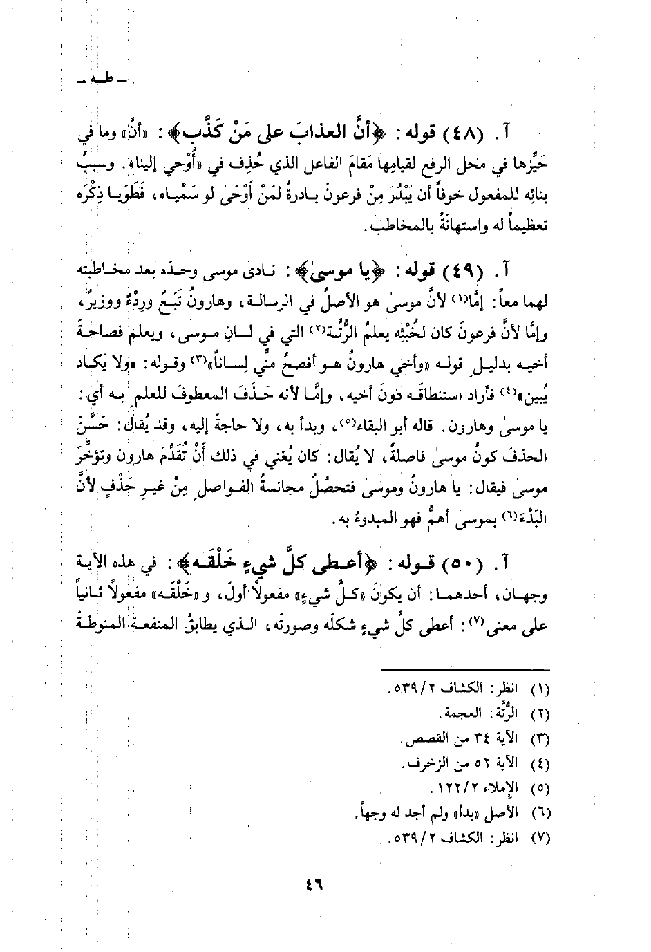 قوله: {ياموسى} : نادى موسى وحدَه بعد مخاطبته لهما معاً: إمَّا لأنَّ موسى هو الأصلُ في الرسالة، وهارونُ تَبَعٌ ورِدْءٌ ووزيرٌ، وإمَّا لأنَّ فرعونَ كان لخُبْثِه يعلمُ الرُّتَّة التي في لسان موسى، ويعلم فصاحةَ أخيه بدليلِ قوله {وَأَخِي هَارُونُ هُوَ أَفْصَحُ مِنِّي لِسَاناً} [القصص: 34] وقوله: {وَلاَ يَكَادُ يُبِينُ} [الزخرف: 52] فأراد استنطاقَه دون أخيه، وإمَّا لأنه حَذَفَ المعطوفَ للعلمِ به أي: يا موسى وهارون. قاله أبو البقاء، وبدأ به، ولا حاجةَ إليه، وقد يُقال: حَسَّنَ الحذفَ كونَ موسى فاصلةً، لا يُقال: كان يُغني في ذلك أَنْ تُقَدِّمَ هارون وتؤخِّرَ موسى فيقال: يا هارونُ وموسى فتحصُلُ مجانسةٌ الفواصلِ مِنْ غيرِ حَذْفٍ لأنَّ البَدْءَ بموسى أهمُّ فهو المبدوءُ به.
