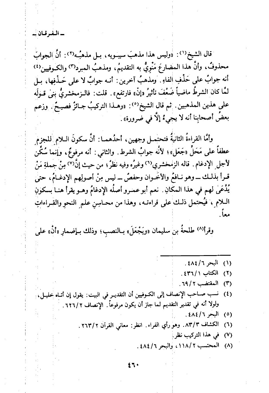 وأمَّا القراءةُ الثانيةُ فتحتمل وجهين، أحدُهما: أنَّ سكونَ اللامِ للجزمِ عطفاً على مَحَلِّ» جَعَل «؛ لأنَّه جوابُ الشرط. والثاني: أنه مرفوعٌ، وإنما سُكِّن لأجلِ الإِدغام. قال الزمخشري وغيرُه وفيه نظرٌ؛ من حيث إنَّ مِنْ جملةِ مَنْ قرأ بذلك وهو نافعٌ والأخَوان وحفصٌ ليس مِنْ أصولِهم الإِدغامُ، حتى يدعى لهم في هذا المكانِ. نعم أبو عمرو أصلُه الإِدغامُ وهو يقرأ هنا بسكونِ اللامِ، فيُحتمل ذلك على قراءته، وهذا من محاسِنِ علمِ النحوِ والقراءاتِ معاً.