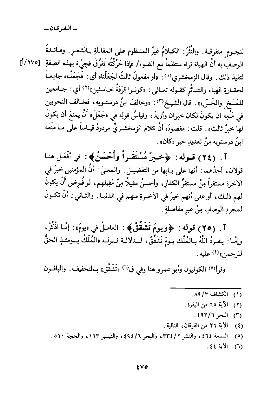 لنجومٍ متفرقة. والنَّثْرُ: الكلامُ غيرُ المنظوم على المقابلةِ بالشعرِ. وفائدةُ الوصفِ به أنَّ الهباءَ تراه منتظماً مع الضوء/ فإذا حَرَّكْتُه تَفَرَّقَ فجِيِْءَ بهذه الصفةِ لتفيدَ ذلك. وقال الزمخشري: «أو مفعولٌ ثالثٌ لجَعَلْناه أي: فَجَعَلْناه جامِعاً لحقارةِ الهَباء والتناثُرِ كقوله تعالى: {كُونُواْ قِرَدَةً خَاسِئِينَ} [البقرة: 65] أي: جامعين للمَسْخِ والخَسْءِ» . قال الشيخ: «وخالَفَ ابنُ درستويه، فخالف النحويين في مَنْعِه أن يكونَ لكان خبران وأزيدُ، وقياسُ قولِه في» جَعَلَ «أَنْ يمنعَ أن يكونَ لها خبرٌ ثالث» . قلت: مقصودُه أنَّ كلامَ الزمخشريِّ مردودٌ قياساً على ما مَنَعَه ابنُ درستويه مِنْ تعديدِ خبر «كان» .