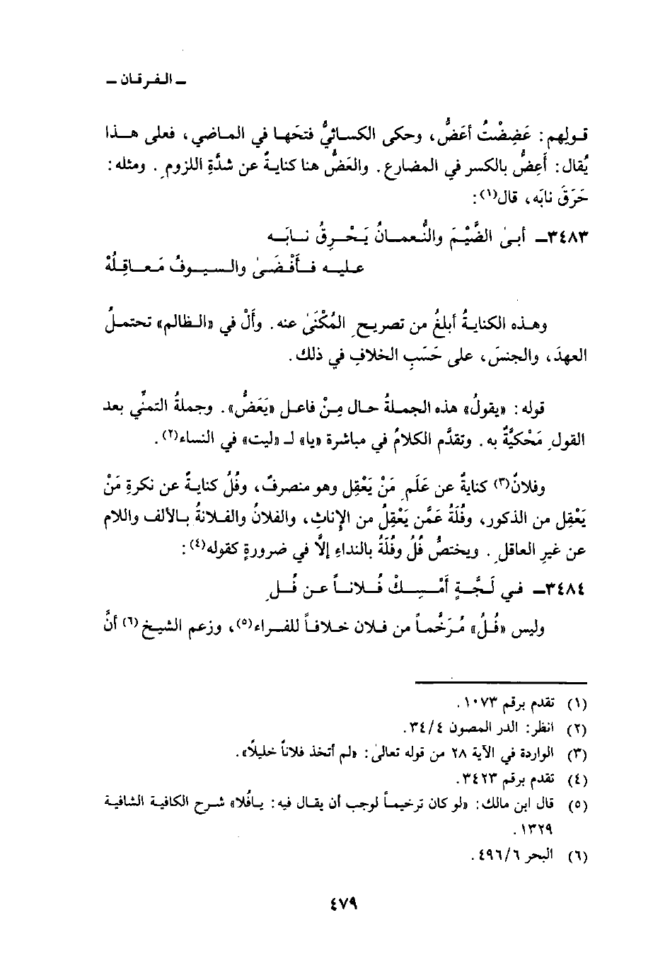 3484 - في لَجَّةٍ أَمْسِكْ فُلاناً عن فُلِ ... وليس «فُلُ» مُرَخَّماً من فلان خلافاً للفراء، وزعم الشيخ أنَّ