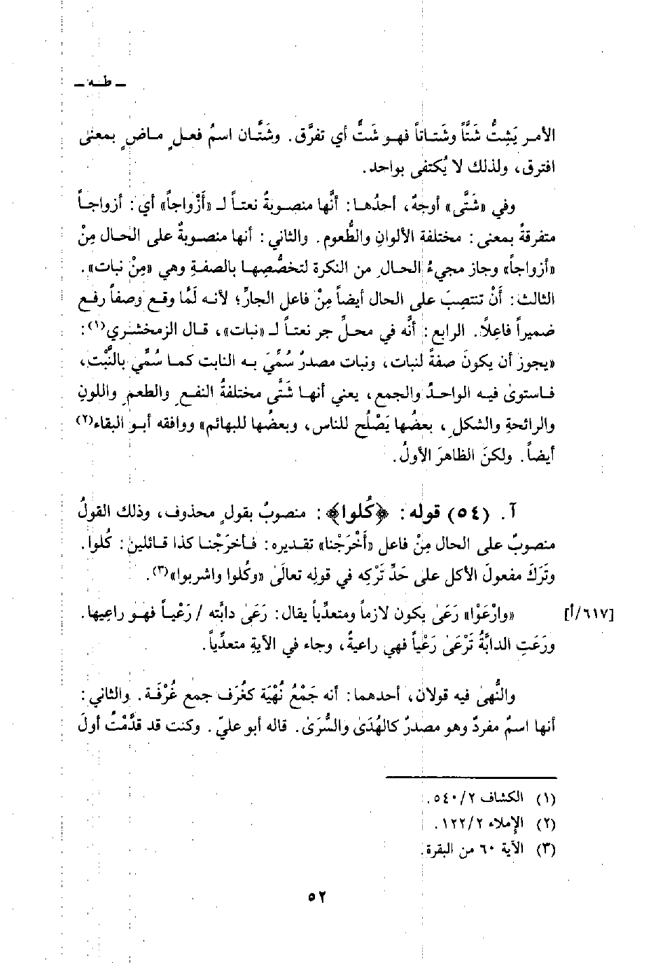 قوله: {كُلُواْ} : منصوبٌ بقولٍ محذوف، وذلك القولُ منصوبٌ على الحال مِنْ فاعل «أَخْرَجْنا» تقديره: فأخرَجْنا كذا قائلين: كُلوا. وتَرَكَ مفعولَ الأكل على حَدِّ تَرْكِه في قولِه تعالى: {كُلُواْ واشربوا} [البقرة: 60] .