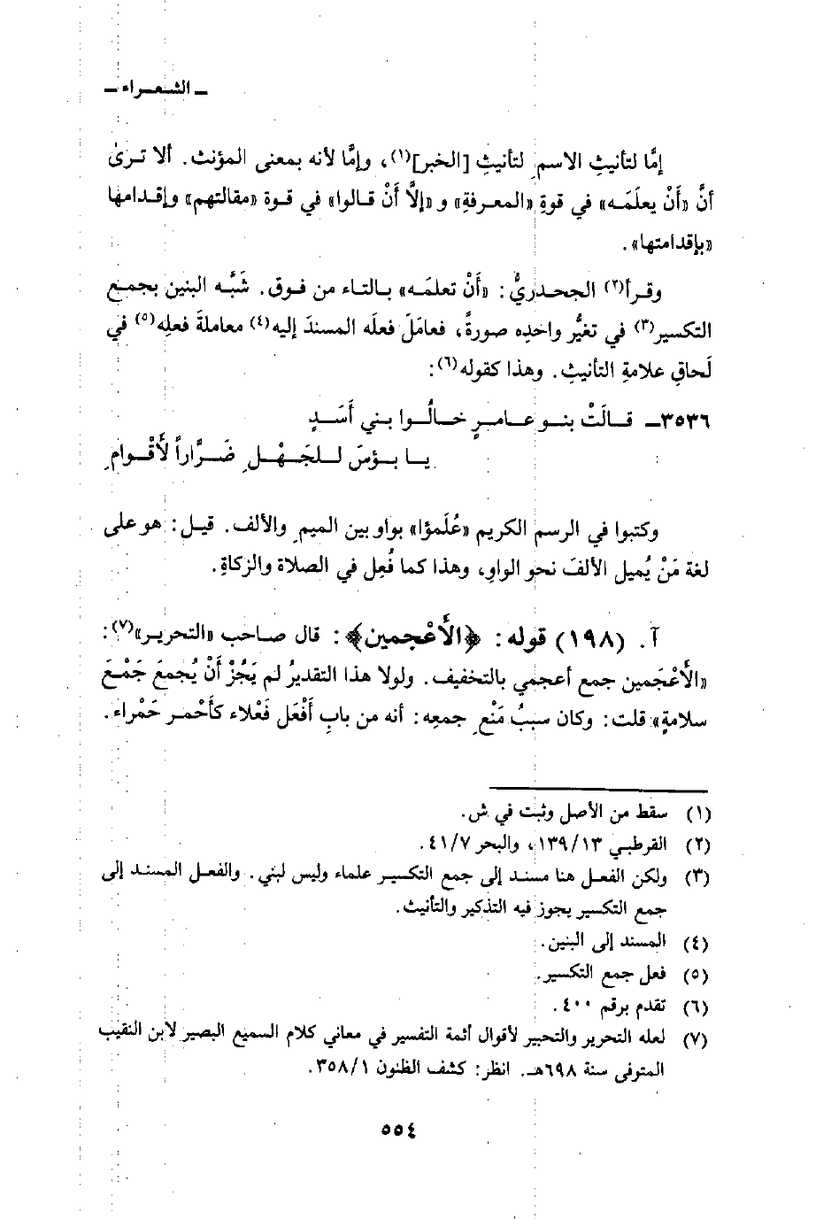 قوله: {الأعجمين} : قال صاحب «التحرير» : «الأعْجَمين جمع أعجمي بالتخفيف. ولولا هذا التقديرُ لم يَجُزْ أَنْ يُجمعَ جَمْعَ سلامةٍ» قلت: وكان سببُ مَنْعِ جمعهِ: أنه من بابِ أَفْعَل فَعْلاء كأَحْمر حَمْراء.
