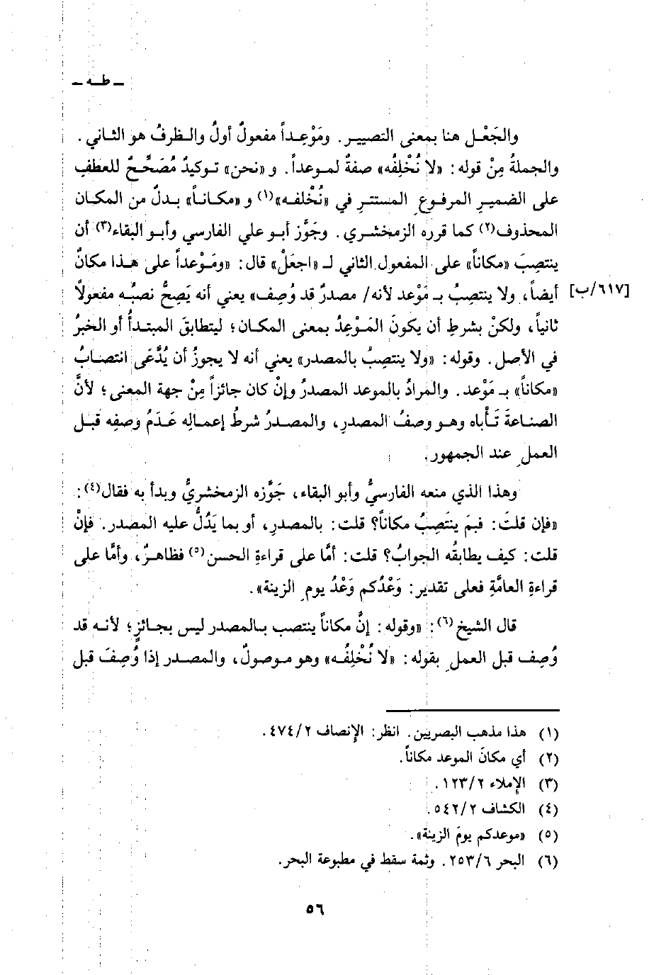 قال الشيخ: «وقوله: إنَّ مكاناً ينتصب بالمصدر ليس بجائزٍ؛ لأنه قد وُصِف قبل العملِ بقوله:» لا نُخْلِفُه «وهو موصولٌ، والمصدر إذا وُصِفَ قبل