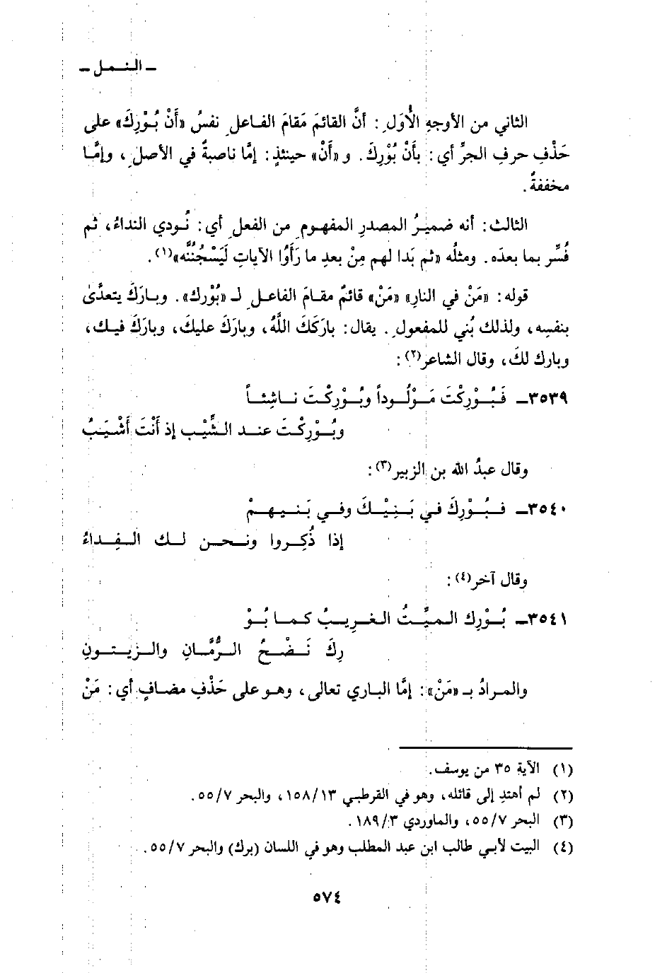 الثاني: من الأوجهِ الأُوَلِ: أنَّ القائمَ مَقامَ الفاعلِ نفسُ «أَنْ بُوْرِكَ» على حَذْفِ حرفِ الجرِّ أي: بأَنْ بُوْرِكَ. و «أَنْ» حينئذٍ: إمَّا ناصبةٌ في الأصلِ، وإمَّا مخففةٌ.