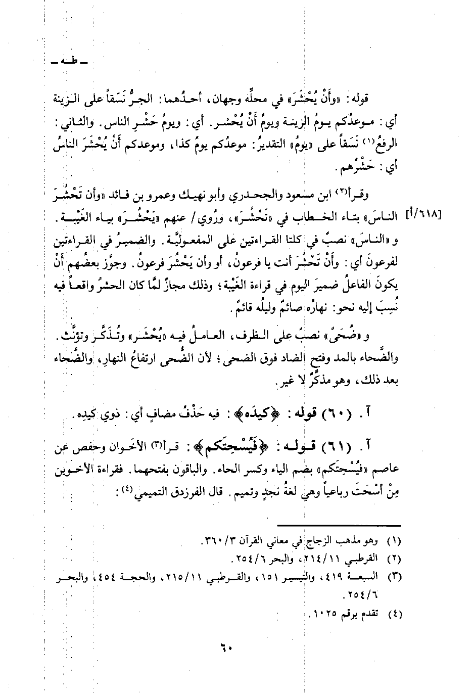 قوله: {وَأَن يُحْشَرَ} في محلِّه وجهان، أحدُهما: الجرُّ نَسَقاً على الزينة أي: موعدُكم يومُ الزينة ويومُ أن يُحْشر. أي: ويومُ حَشْرِ الناس. والثاني: الرفعُ: نَسَقاً على» يومُ «التقديرُ: موعدُكم يومُ كذا، وموعدكم أَنْ يُحْشَرَ الناسُ أي: حَشْرُهم.