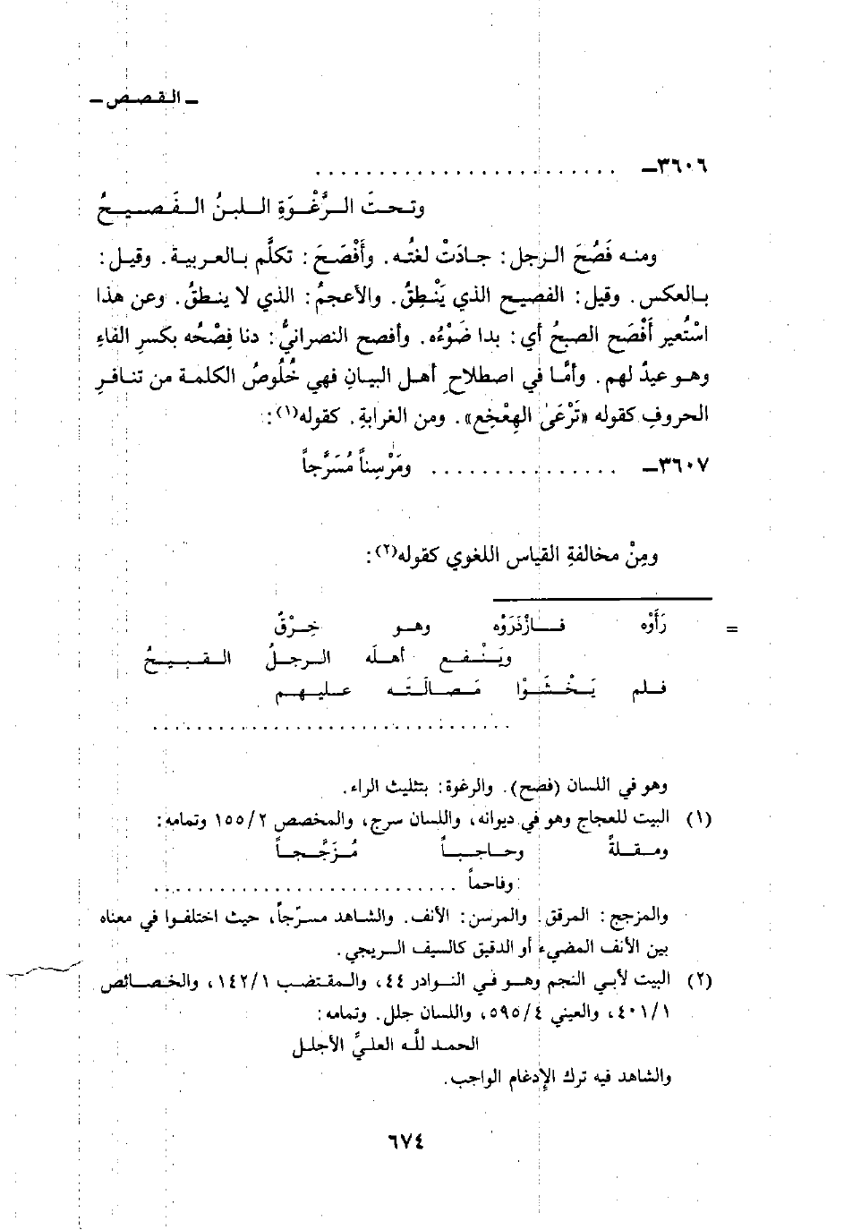 3607 -. . . . . . . . . . . . . . . . . . . ومَرْسِناً مُسَرَّجاً ... ومِنْ مخالفةِ القياس اللغوي كقوله: