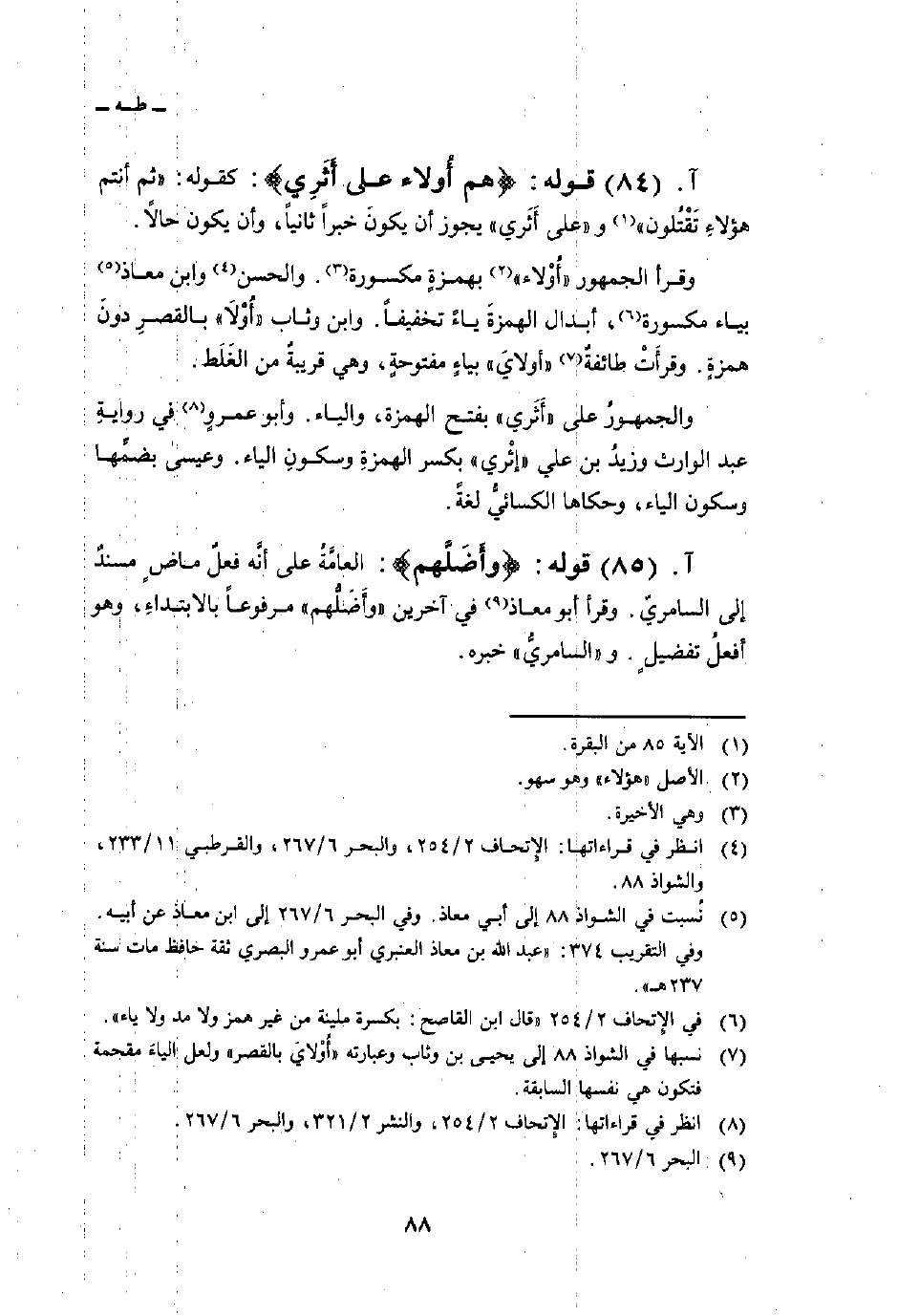 قوله: {وَأَضَلَّهُمُ} : العامَّةُ على أنَّه فعلٌ ماضٍ مسندٌ إلى السامريّ. وقرأ أبو معاذ في آخرين «وأَضَلُّهم» مرفوعاً بالابتداءِ، وهو أفعلُ تفضيلٍ. و «السامريُّ» خبره.
