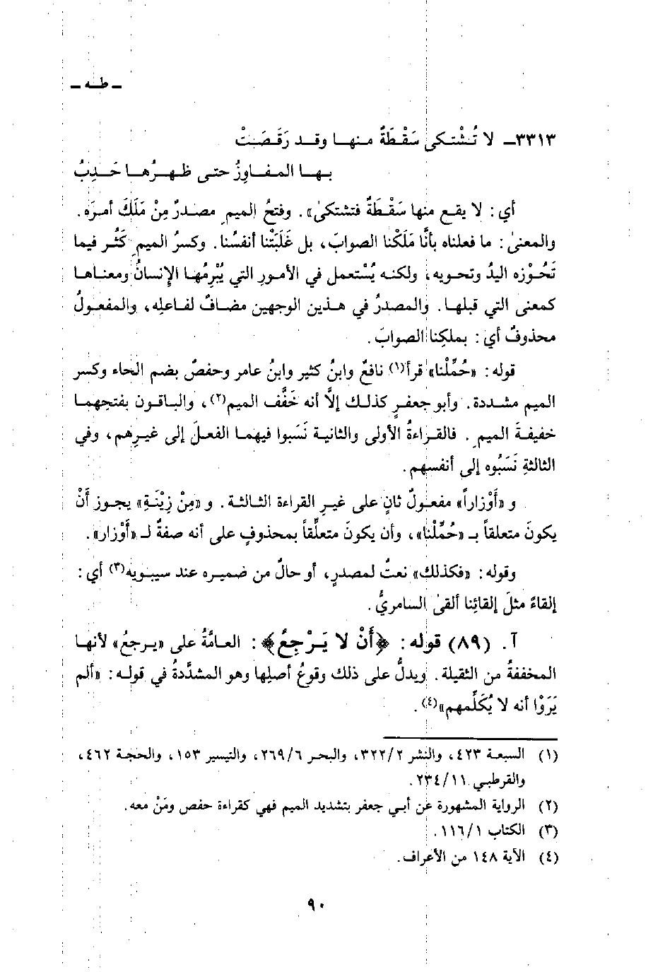 قوله: {حُمِّلْنَآ} قرأ نافعٌ وابنُ كثير وابنُ عامر وحفصٌ بضم الحاء وكسر الميم مشددة. وأبو جعفرٍ كذلك إلاَّ أنه خَفَّف الميم، والباقون بفتحِهما خفيفةَ الميمِ. فالقراءةُ الأولى والثانية نَسَبوا فيهما الفعلَ إلى غيرِهم، وفي الثالثةِ نَسَبُوه إلى أنفسهم.