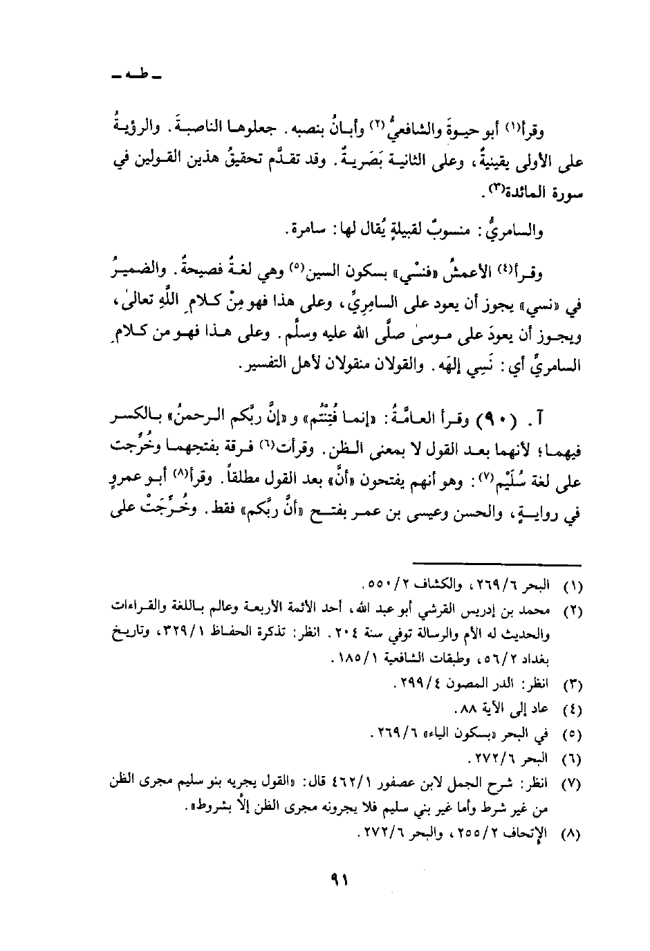 وقرأ العامَّةُ: «إنما فُتِنْتُم» و «إنَّ ربَّكم الرحمنُ» بالكسر فيهما، لأنهما بعد القول لا بمعنى الظن. وقرأت فرقة بفتحِهما وخُرِِّجت على لغة سُلَيْم: وهو أنهم يفتحون «أنَّ» بعد القول مطلقاً. وقرأ أبو عمروٍ في روايةٍ، والحسن وعيسى بن عمر بفتح «أنَّ ربَّكم» فقط. وخُرِّجَتْ على