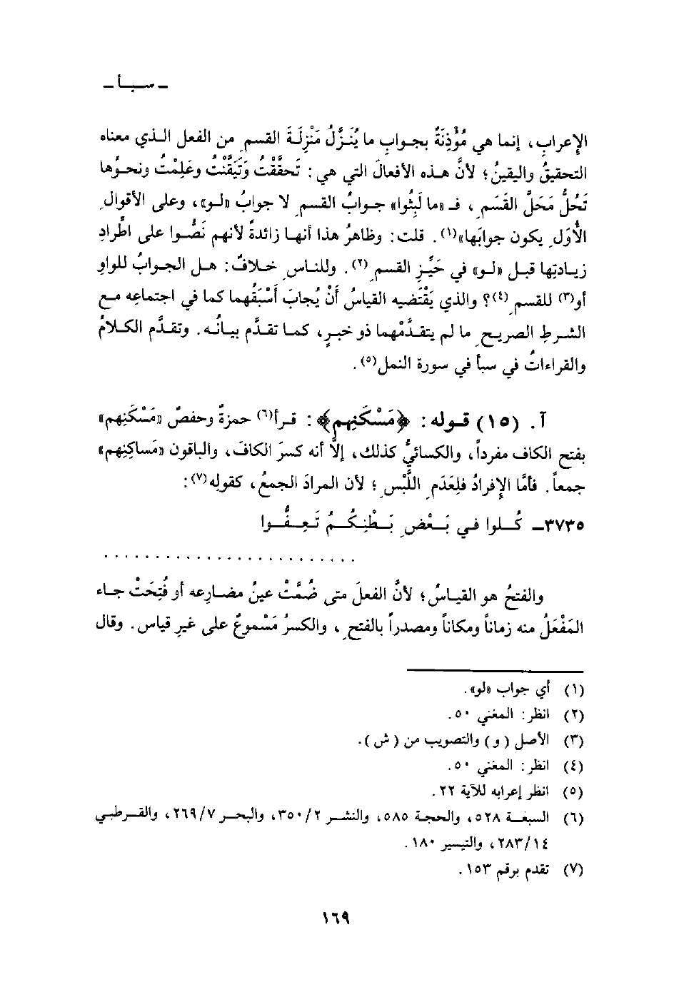 الإِعرابِ، إنما هي مُؤْذِنَةٌ بجوابِ ما يُنَزَّلُ مَنْزِلَةَ القسمِ من الفعل الذي معناه التحقيقُ واليقينُ؛ لأنَّ هذه الأفعالَ التي هي: تَحقَّقْتُ وَتَيَقَّنْتُ وعَلِمْتُ ونحوُها تَحُلُّ مَحَلَّ القَسَمِ، ف» ما لَبِثُوا «جوابُ القسمِ لا جوابُ» لو «، وعلى الأقوالِ الأُوَلِ يكون جوابَها» . قلت: وظاهرُ هذا أنها زائدةٌ لأنهم نَصُّوا على اطِّرادِ زيادتِها قبل «لو» في حَيِّزِ القسمِ. وللناسِ خلافٌ: هل الجوابُ للواوِ أو للقسمِ؟ والذي يَقْتَضيه القياسُ أَنْ يُجابَ أَسْبَقُهما كما في اجتماعِه مع الشرطِ الصريحِ ما لم يتقدَّمْهما ذو خبرٍ، كما تقدَّم بيانُه. وتقدَّم الكلامُ والقراءاتُ في سبأ في سورة النمل.