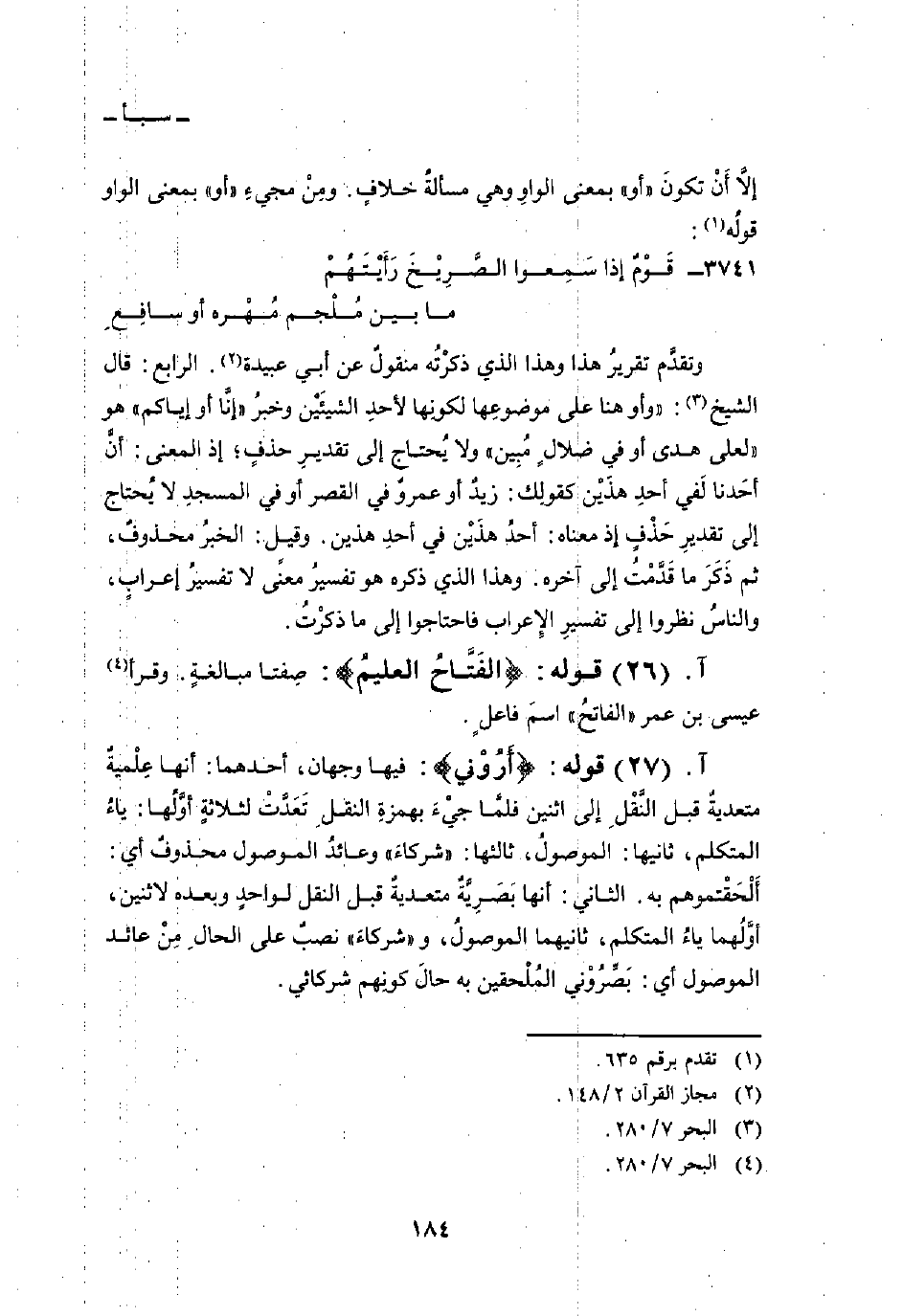 قوله: {أَرُونِيَ} : فيها وجهان، أحدهما: أنها عِلْميةٌ متعديةٌ قبل النَّقْلِ إلى اثنين فلمَّا جيْءَ بهمزةِ النقلِ تَعَدَّتْ لثلاثةٍ أوَّلُها: ياءُ المتكلم، ثانيها: الموصولُ، ثالثها: «شركاءَ» وعائدُ الموصول محذوفٌ أي: أَلْحَقْتموهم به. الثاني: أنها بَصَرِيَّةٌ متعديةٌ قبل النقل لواحدٍ وبعده لاثنين، أوَّلُهما ياءُ المتكلم، ثانيهما الموصولُ، و «شركاءَ» نصبٌ على الحالِ مِنْ عائد الموصول أي: بَصِّرُوْني المُلْحقين به حالَ كونِهم شركائي.