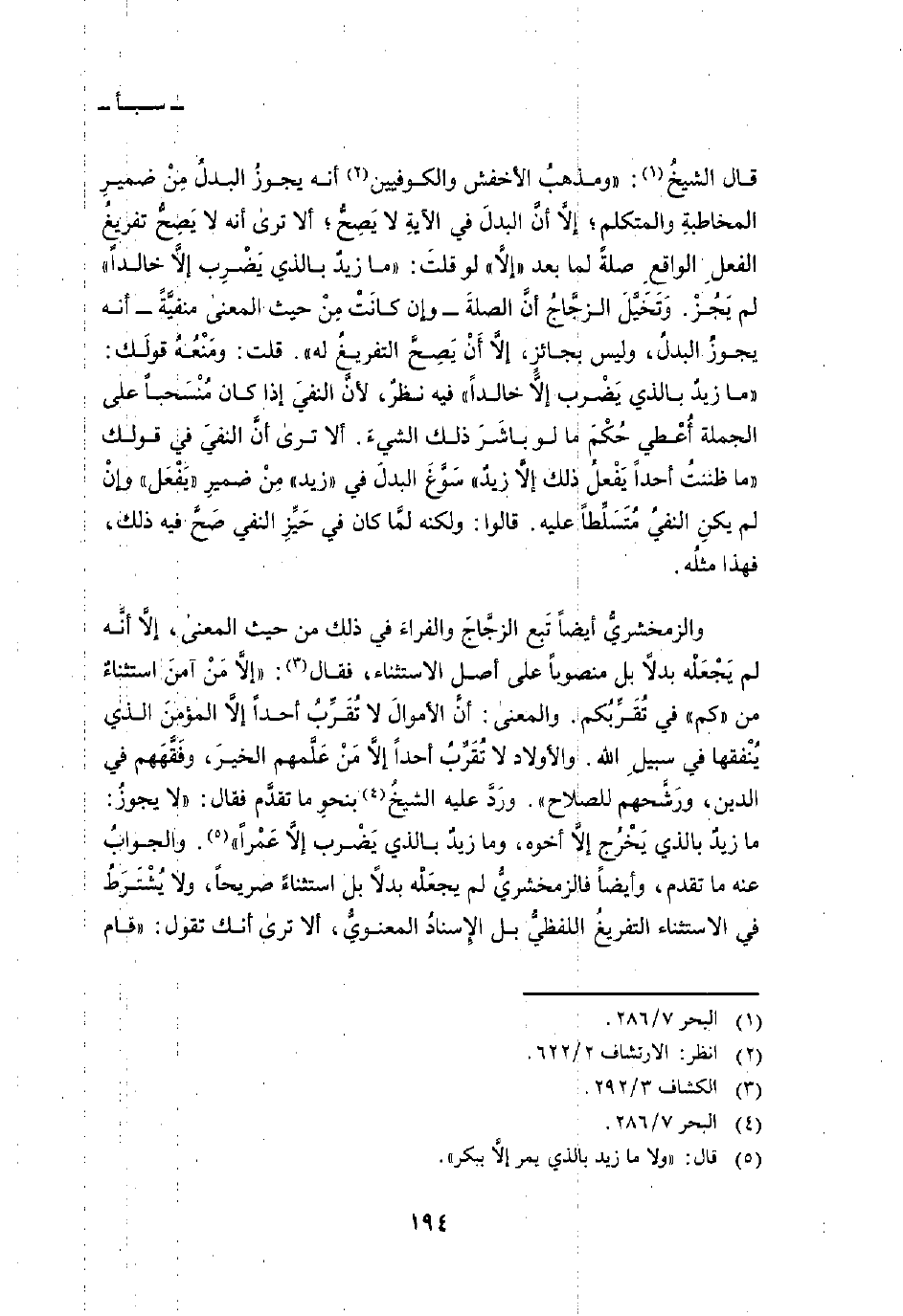 قال الشيخُ: «ومذهبُ الأخفش والكوفيين أنه يجوزُ البدلُ مِنْ ضميرِ المخاطبةِ والمتكلم؛ إلاَّ أنَّ البدلَ في الآيةِ لا يَصِحُّ؛ ألا ترى أنه لا يَصِحُّ تفريغُ الفعلِ الواقعِ صلةً لما بعد» إلاَّ «لو قلتَ:» ما زيدٌ بالذي يَضْرِب إلاَّ خالداً «لم يَجُزْ. وَتَخَيَّلَ الزجَّاجُ أنَّ الصلةَ - وإن كانَتْ مِنْ حيث المعنى منفيَّةً - أنه يجوزُ البدلُ، وليس بجائزٍ، إلاَّ أَنْ يَصِحَّ التفريغُ له» . قلت: ومَنْعُهُ قولَك: «ما زيدٌ بالذي يَضْرب إلاَّ خالداً» فيه نظرٌ، لأنَّ النفيَ إذا كان مُنْسَحباً على الجملة أُعْطي حُكْمَ ما لو باشَرَ ذلك الشيءَ. ألا ترى أنَّ النفيَ في قولك «ما ظننتُ أحداً يَفْعلُ ذلك إلاَّ زيدٌ» سَوَّغَ البدلَ في «زيد» مِنْ ضميرِ «يَفْعَل» وإنْ لم يكنِ النفيُ مُتَسَلِّطاً عليه. قالوا: ولكنه لمَّا كان في حَيِّزِ النفي صَحَّ فيه ذلك، فهذا مثلُه.