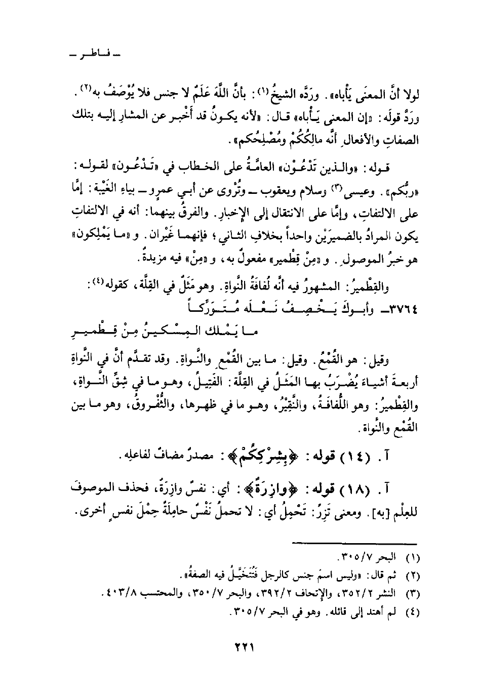 قوله: «والذين تَدْعُوْن» العامَّةُ على الخطاب في «تَدْعُون» لقوله: «ربُّكم» . وعيسى وسلام ويعقوب - وتُرْوى عن أبي عمرٍو - بياءِ الغَيْبة: إمَّا على الالتفاتِ، وإمَّا على الانتقال إلى الإِخبارِ. والفرقُ بينهما: أنه في الالتفاتِ يكون المرادُ بالضميرَيْن واحداً بخلافِ الثاني؛ فإنهما غَيْران. و «ما يَمْلِكون» هو خبرُ الموصولِ. و «مِنْ قِطْمير» مفعولٌ به، و «مِنْ» فيه مزيدةٌ.