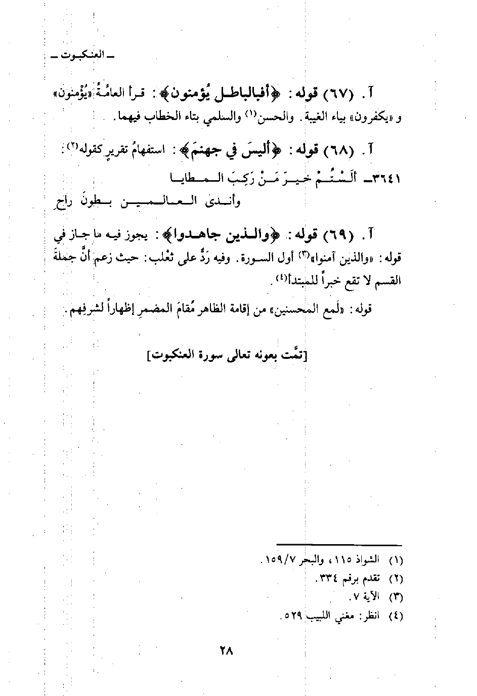 قوله: {أفبالباطل يُؤْمِنُونَ} : قرأ العامَّةُ «يُؤْمنون» و «يكفرون» بياء الغيبة. والحسن والسلمي بتاء الخطاب فيهما.