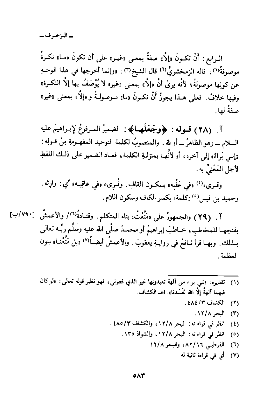 قوله: {وَجَعَلَهَا} : الضميرُ المرفوعُ لإِبراهيمَ عليه السلام - وهو الظاهرُ - أو لله. والمنصوبُ لكلمة التوحيد المفهومةِ مِنْ قولِه: «إنني بَراءٌ» إلى آخره، أو لأنَّها بمنزلةِ الكلمة، فعاد الضمير على ذلك اللفظِ لأجل المَعْنِيِّ به.